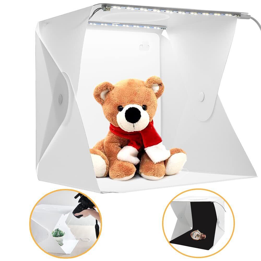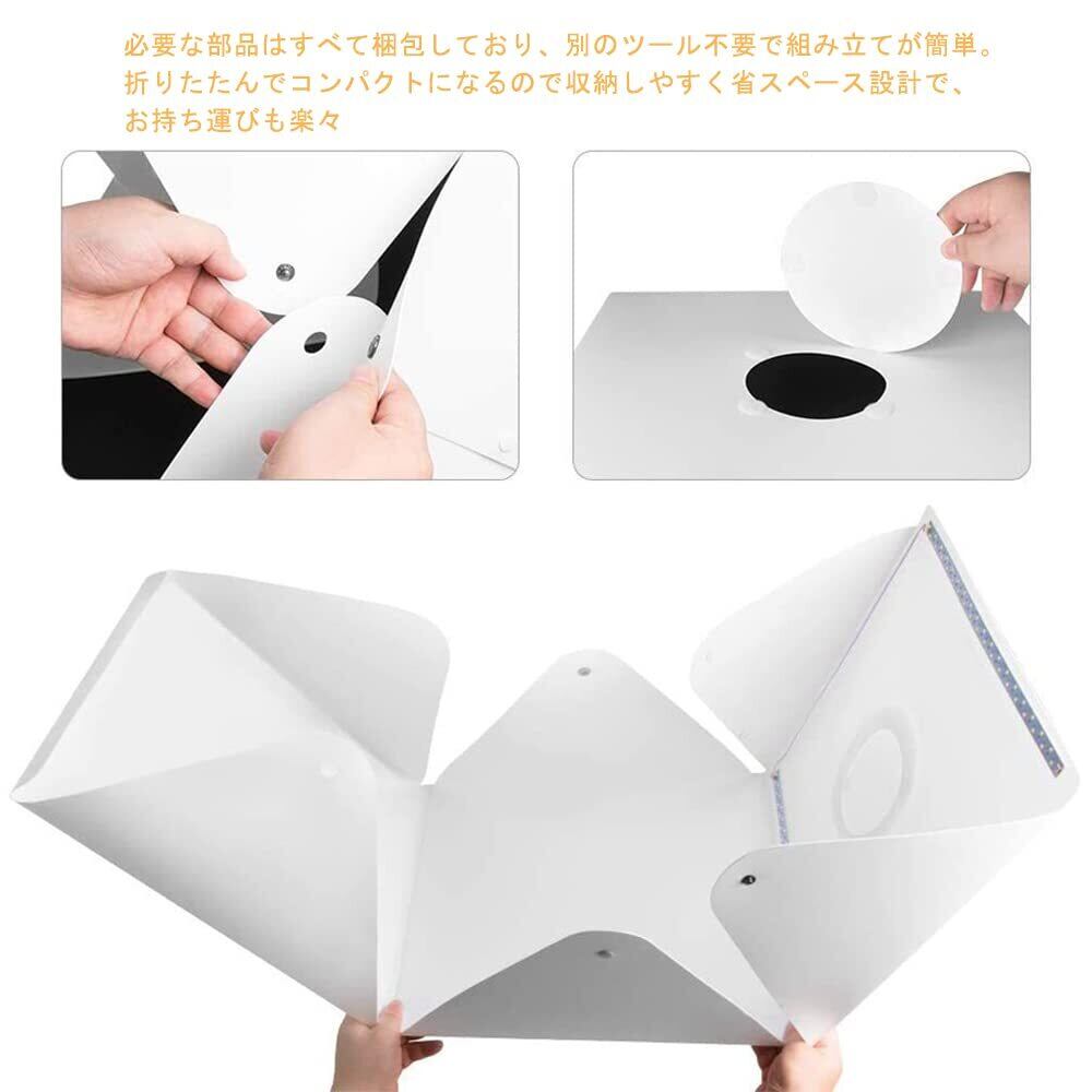 【折りたたみ撮影ボックス】持ち運び可能な折りたたみ構造の設計により、設置と持ち運びがさらに便利になります。 内蔵のLEDライトは平均的な光を提供し、写真が影や反射の影響を受けるのを防ぎます。