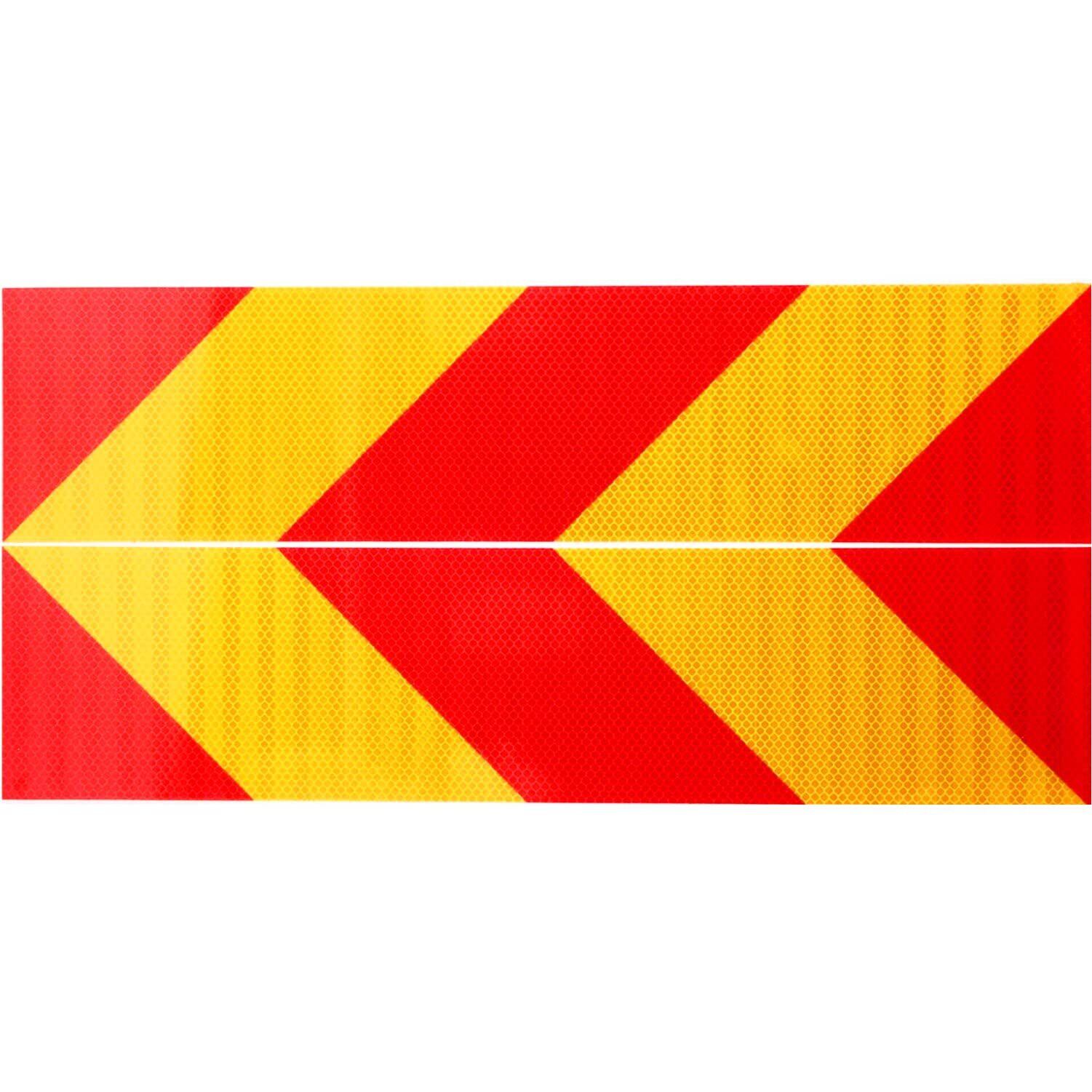 大型車用(大型トラック/トラクター)等の追突防止・予防の反射板2枚組セットです。 サイズ(約) : 135mm × 565mm 左右セット(計2枚)アルミ板付き ※シール含む厚さ 約1mm/1枚 プリズム型高輝度反射シートを使用したゼブラ(縞型)タイプの通常版になります。 穴が付いていませんので、穴を開けていただくか、両面テープで貼ってご利用ください。 輸入品ですが日本国内にて全品チェックの上、出荷しておりますので安心してご購入ください。