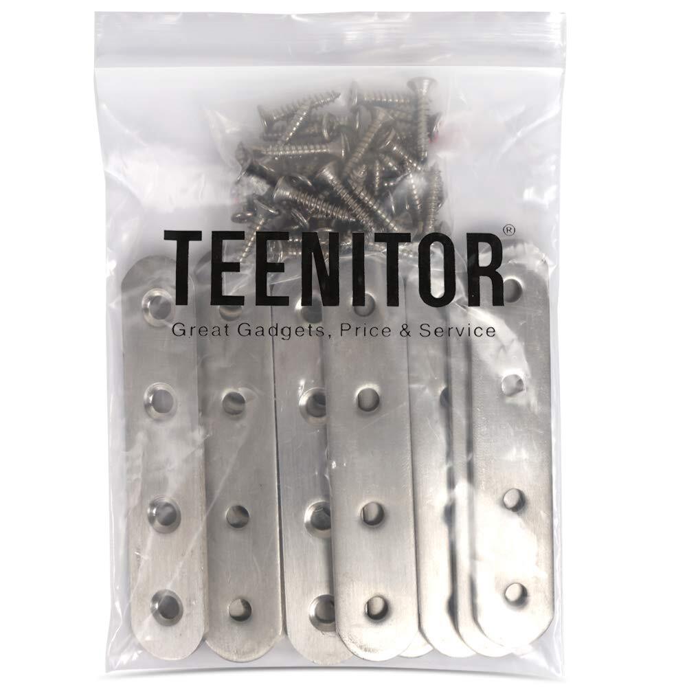Teenitor ジョイント金具 フラット ステンレス アングル 接合金具 100×20×3mm フラットプレート ブラケット金具 連結金具 10個 ステンレスネジ 40個 フラット修理プレート 固定板 プレート 棚受け金具