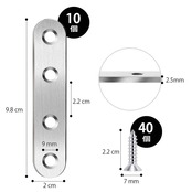 【パッケージ内容】ジョイント金具19型フラット×10、専用ネジ×40。生活用品の連結金具としても幅広く活用でき、大工作業や補強金具としても定番アイテムです。
