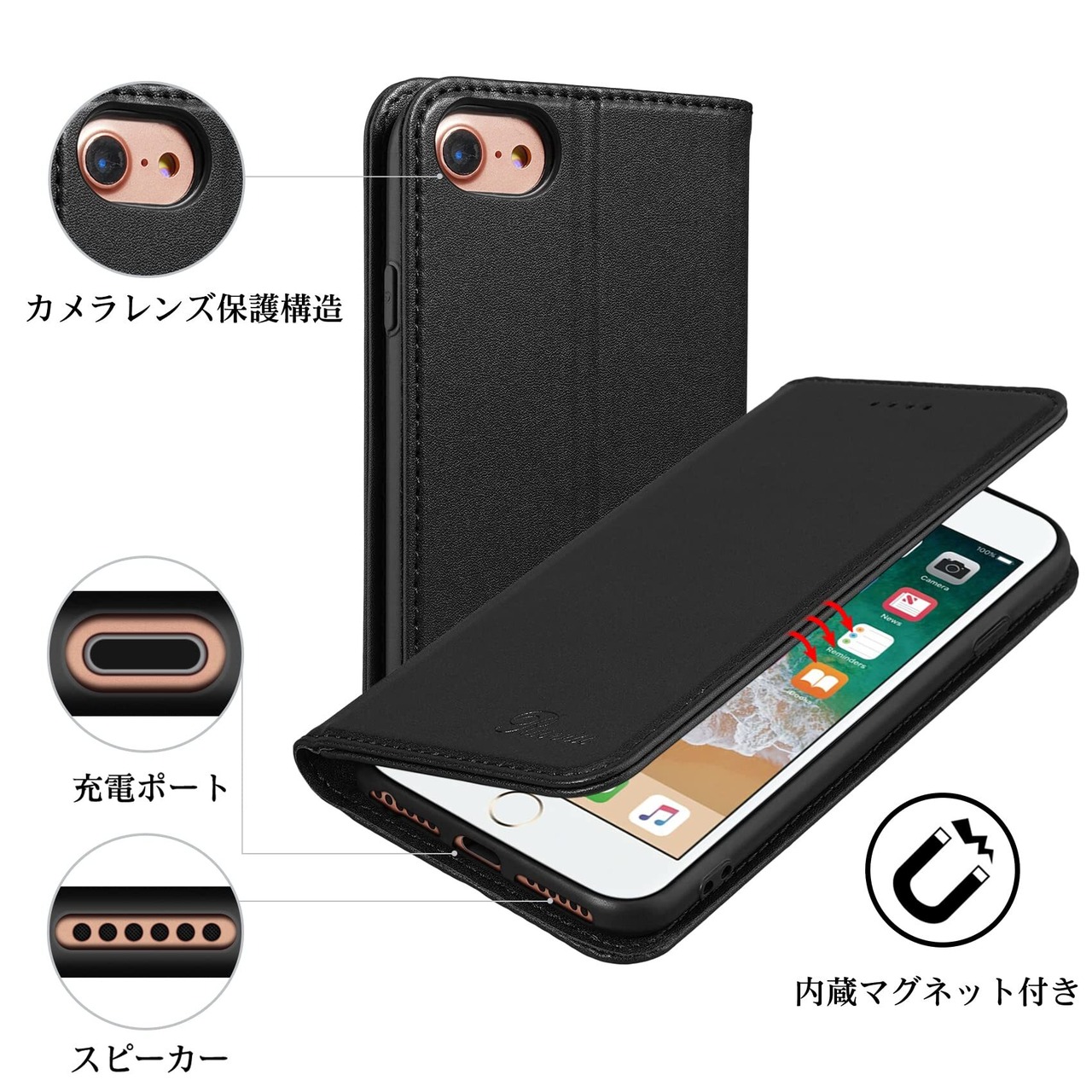 iPhone se 第3世代 ケース iPhone se 第2世代 手帳型 iPhone8 手帳型ケース Rssviss 内蔵マグネット 式 カード収納 iPhone8 ケース 手帳型 アイフォン SE2 手帳型 ケース スタンド機能 全面保護 衝撃吸収 財布型 iPhone7/iPhone8/iPhone se2/iPhone se3 専用手帳型ケース 4.7インチ対応 R3 ブラック