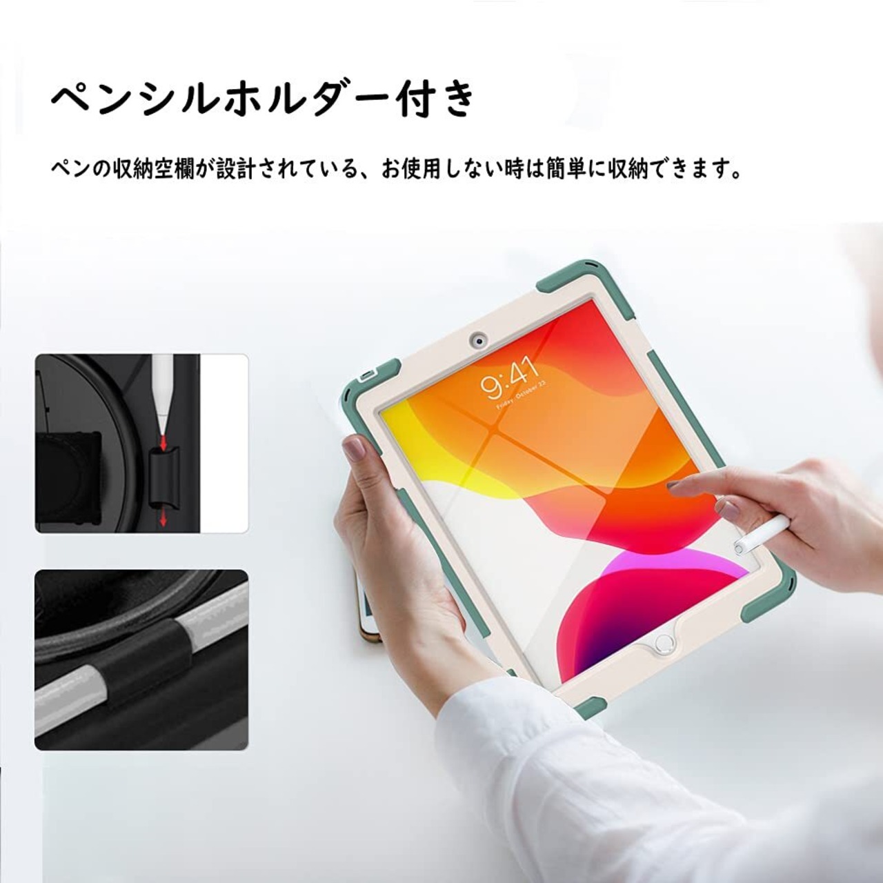 ZenRich iPad 9世代/8世代/7世代 ケース 耐衝撃 保護フィルム付き/ペン収納/360°回転スタンド ハンドストラップ/ショルダーストラップ 全面保護カバー ipad 第9世代/第8世代/第7世代 10.2インチ 現場用 ケース(適格請求書発行事業者)