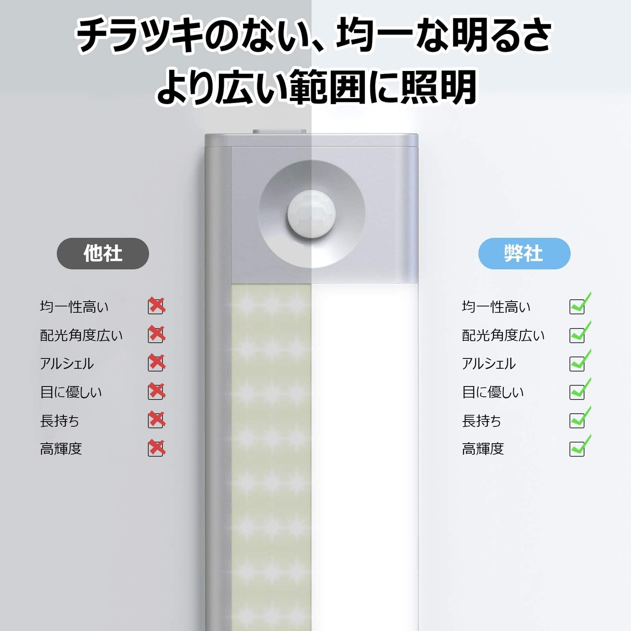 【目に優しい光】とても明るく、柔らかく、ちらつきのない照明を提供し、省エネ、長寿命、環境にも優しいセンサーライトです。光を均一に分散し、ランプビーズが見えない為、まぶしさを防ぎ、目をきちんと保護します。【メーカー保証】ご使用中に何か問題が発生しましたら遠慮なく注文履歴によりご連絡をお願いいたします。誠実に対応させていただきます。