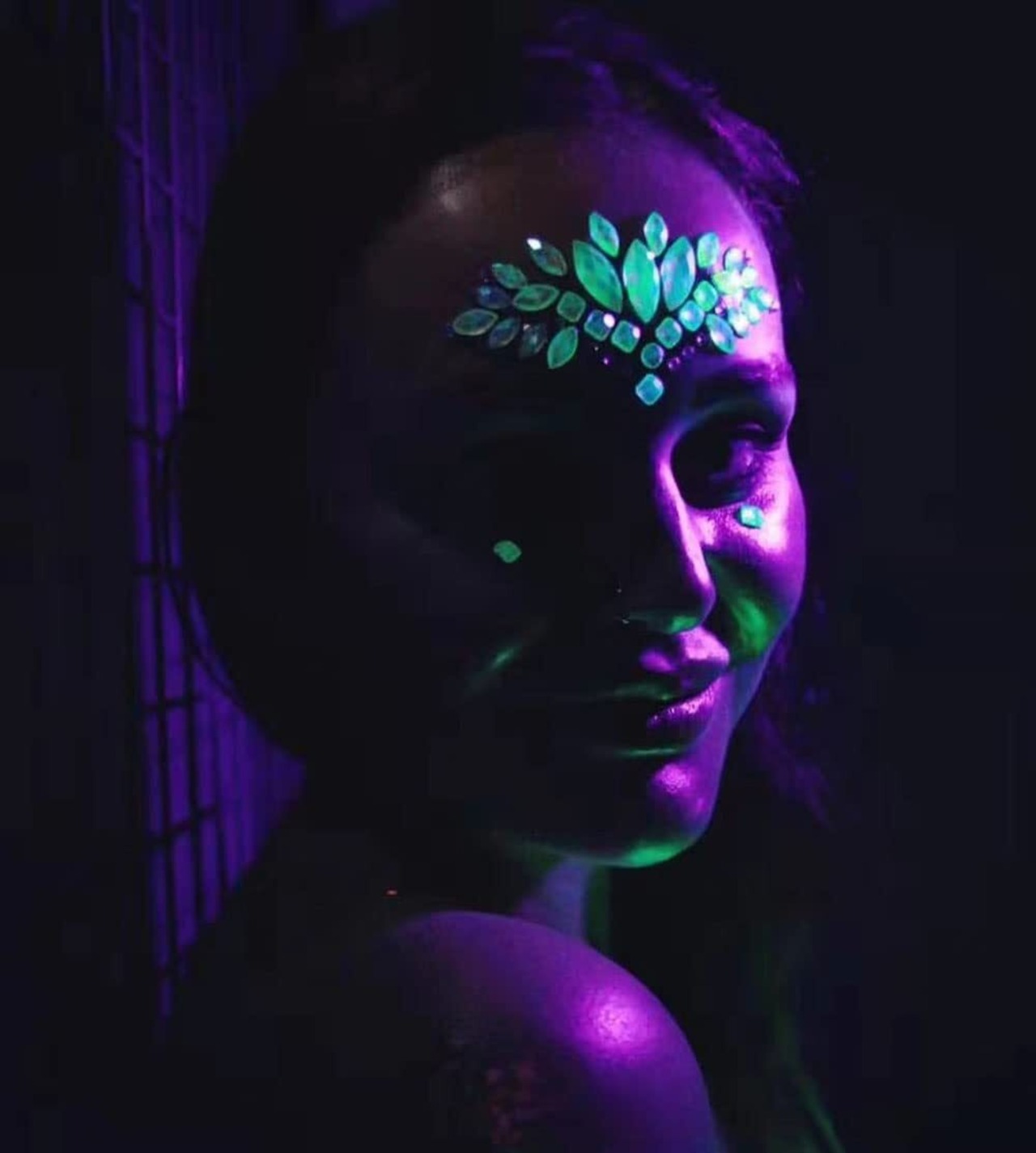 ラインストーン 3枚セット顔 3D 光る キラキラシール 蓄光 フェースステッカー