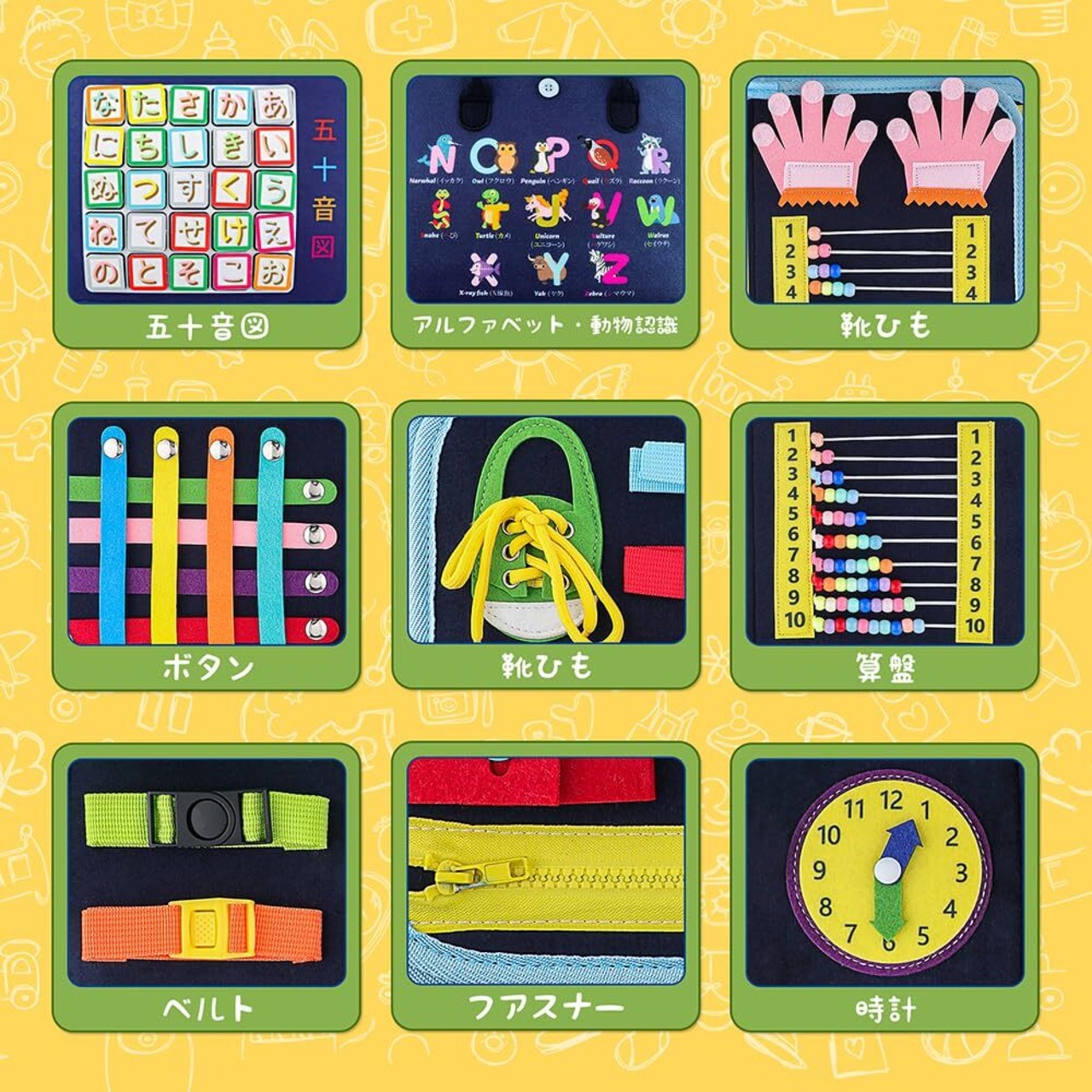 【こどもが夢中になるモンテッソーリ知育おもちゃ!】20種類のバラエティ豊かなボタン、バックル、靴紐、ジッパー、五十音順図などで遊べる、「モンテッソーリ」と呼ばれる知育用玩具です。一般に洋服についている留め具をまとめてあるオモチャで、子供の知力、創造性を刺激し、能力の開発に役立ちます。