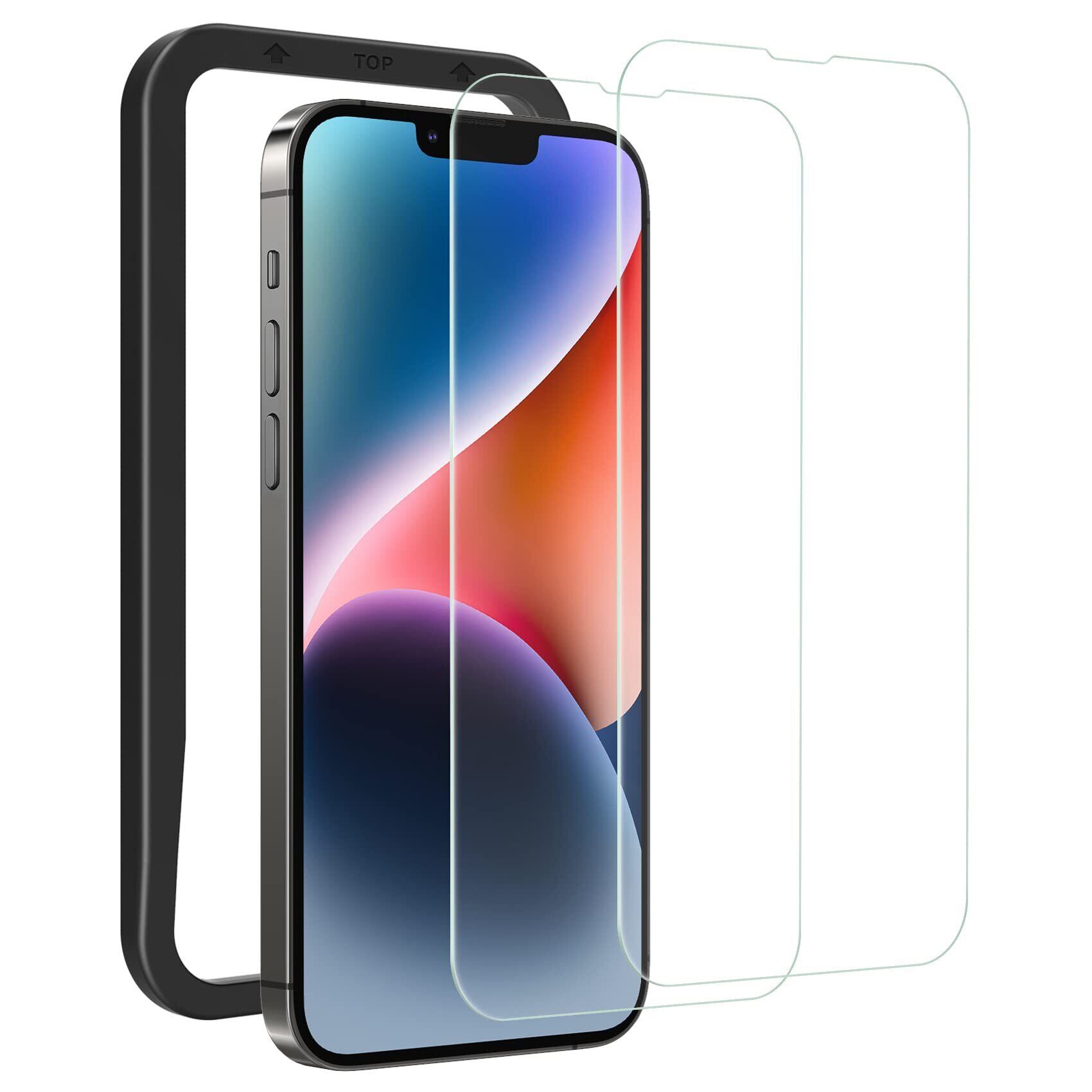 NIMASO ガラスフィルム iPhone 14 用 抗菌 強化 ガラス 保護 フィルム ガイド枠付き 2枚セット iPhone 14 対応 6.1インチ用 NSP22K608