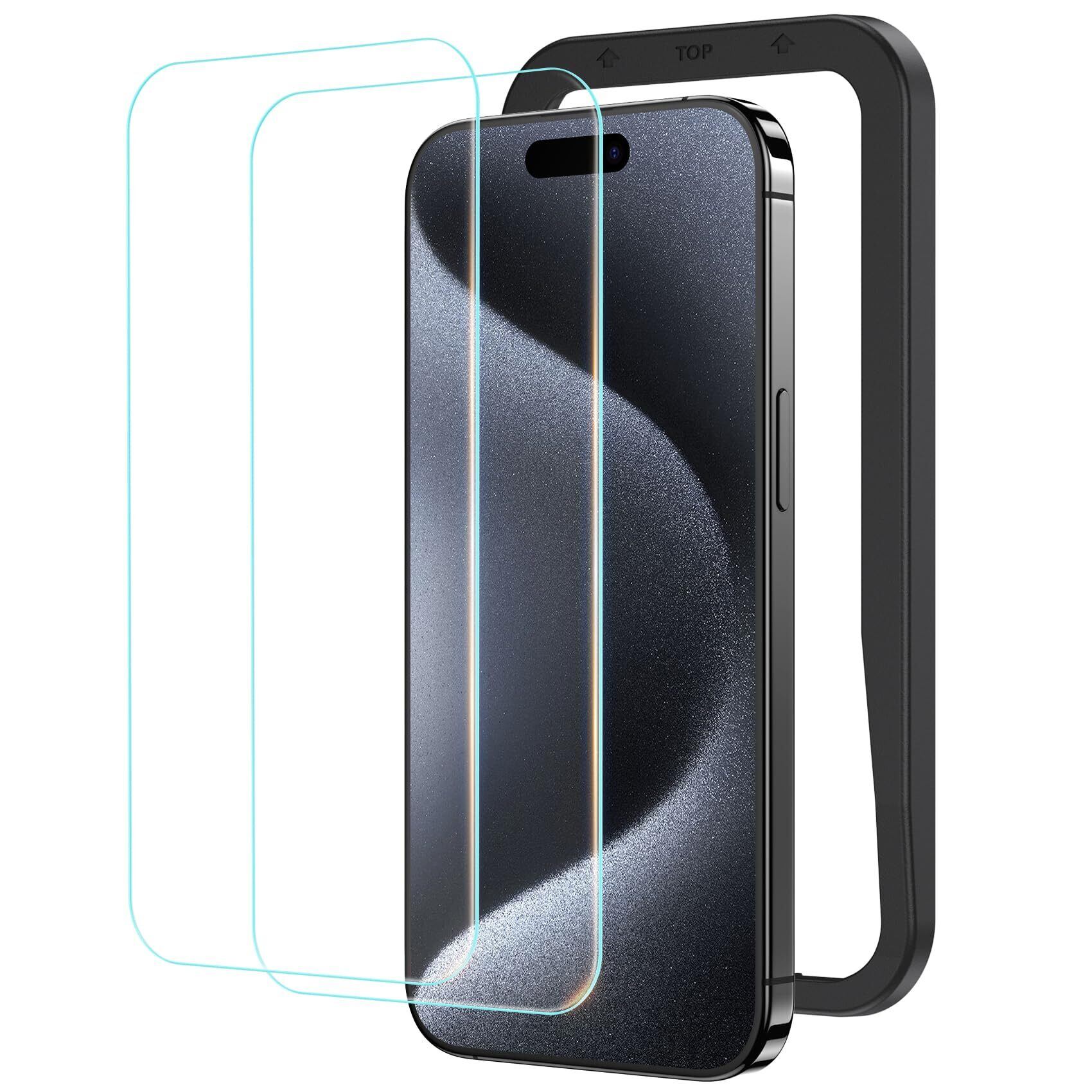 NIMASO ガラスフィルム iPhone15ProMax用 強化ガラス 保護フィルム ガイド枠付き 2枚セット アイフォン15プロマックス対応(6.7インチ) NSP23H769