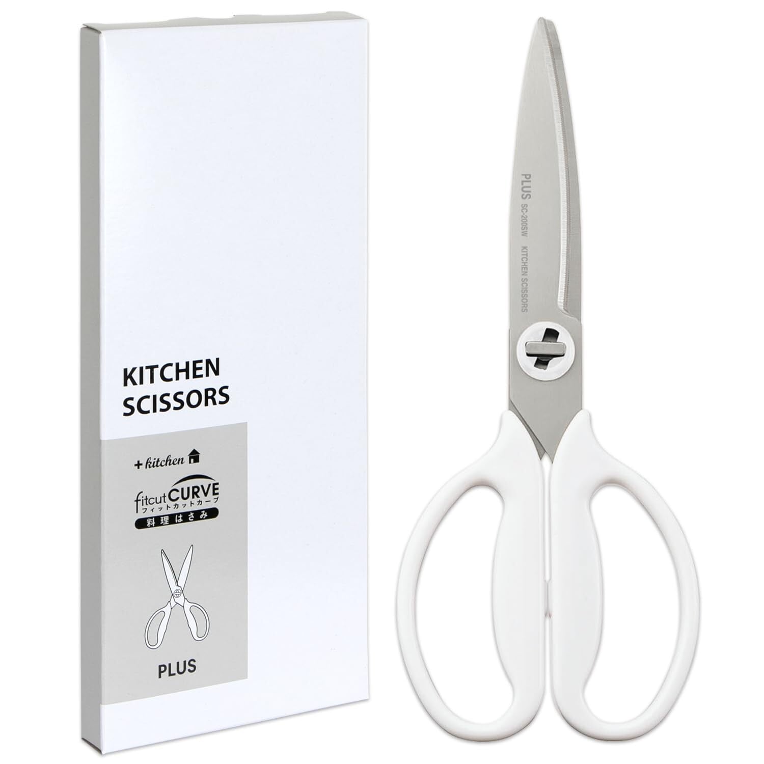 プラス キッチンバサミ 料理ばさみ 分解 ステンレス 食洗機対応 ストレスのない切れ味 フィットカットカーブ マッシュルームホワイト 紙箱包装 35728