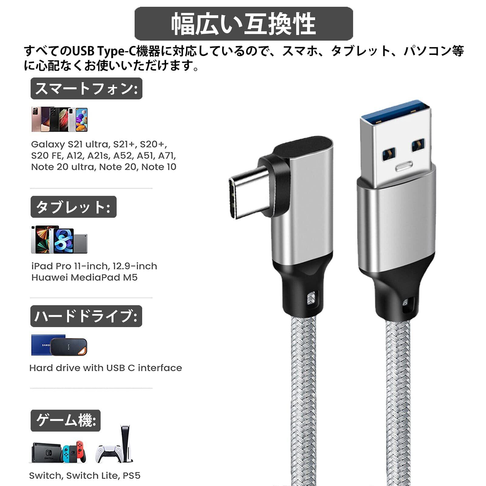 USB-C & USB-A 3.1(Gen2) ケーブル L字 1m (10Gbpsデータ転送) LpoieJun PD/QC 60W 超高速充電 USB A to USB Cケーブル スマートフォン/タブレット/ゲーム機のタイプc機種に対応 (グレー)