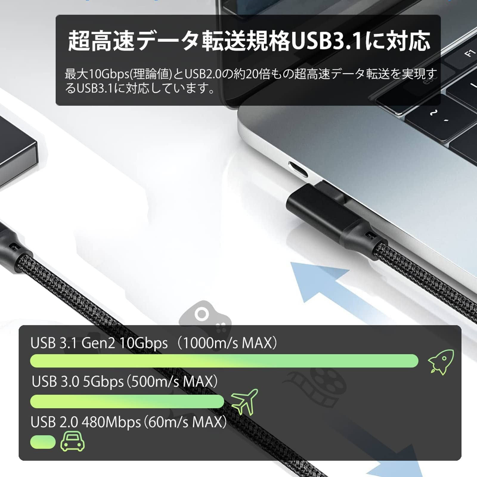 USB-C & USB-A 3.1(Gen2) ケーブル L字
