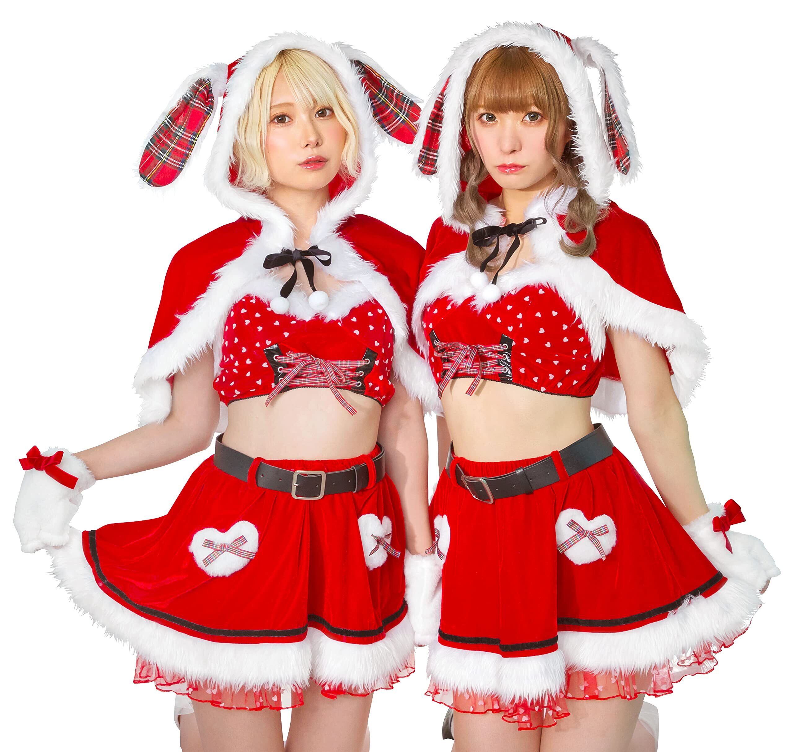 ケープのうさ耳は、タータンチェック柄を使っていたり、ブラトップとスカートの裾にハート柄のチュール素材を重ねていたり、こだわりのオリジナルデザインがとことん甘くキュートな仕上がりです。