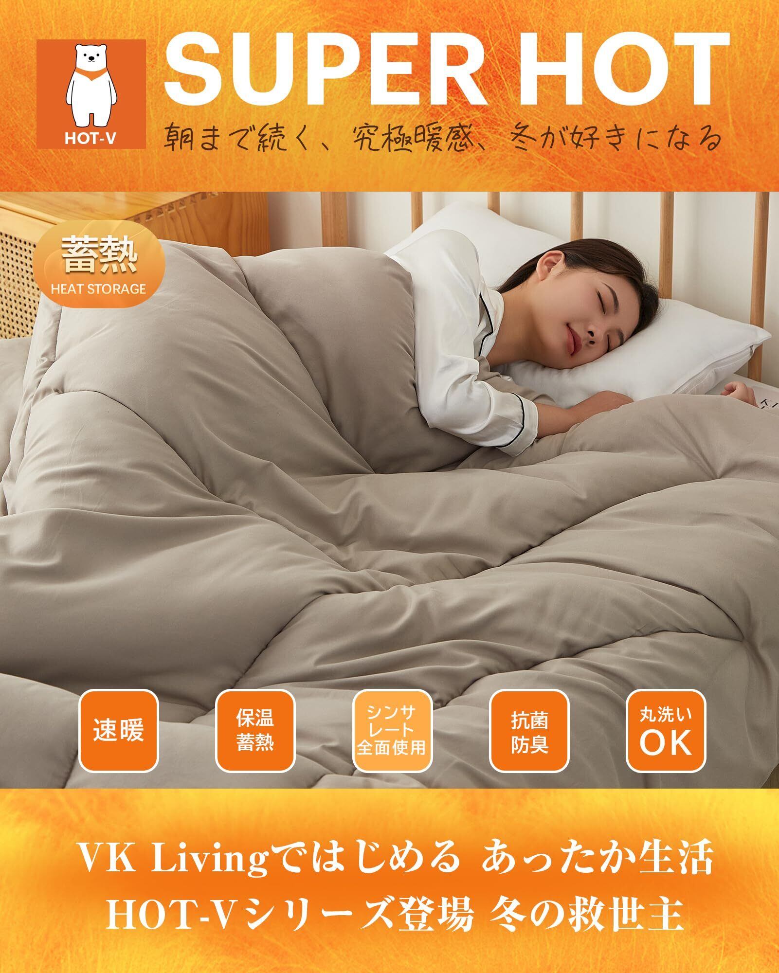 VK Living 掛け布団 シンサレート セミダブル 冬 羽毛より暖かい 【SUPER HOT】 洗える 2.4kg あったか オールシーズン ほこりが出にくい 体にフィット 170x210 グレーベージュ
