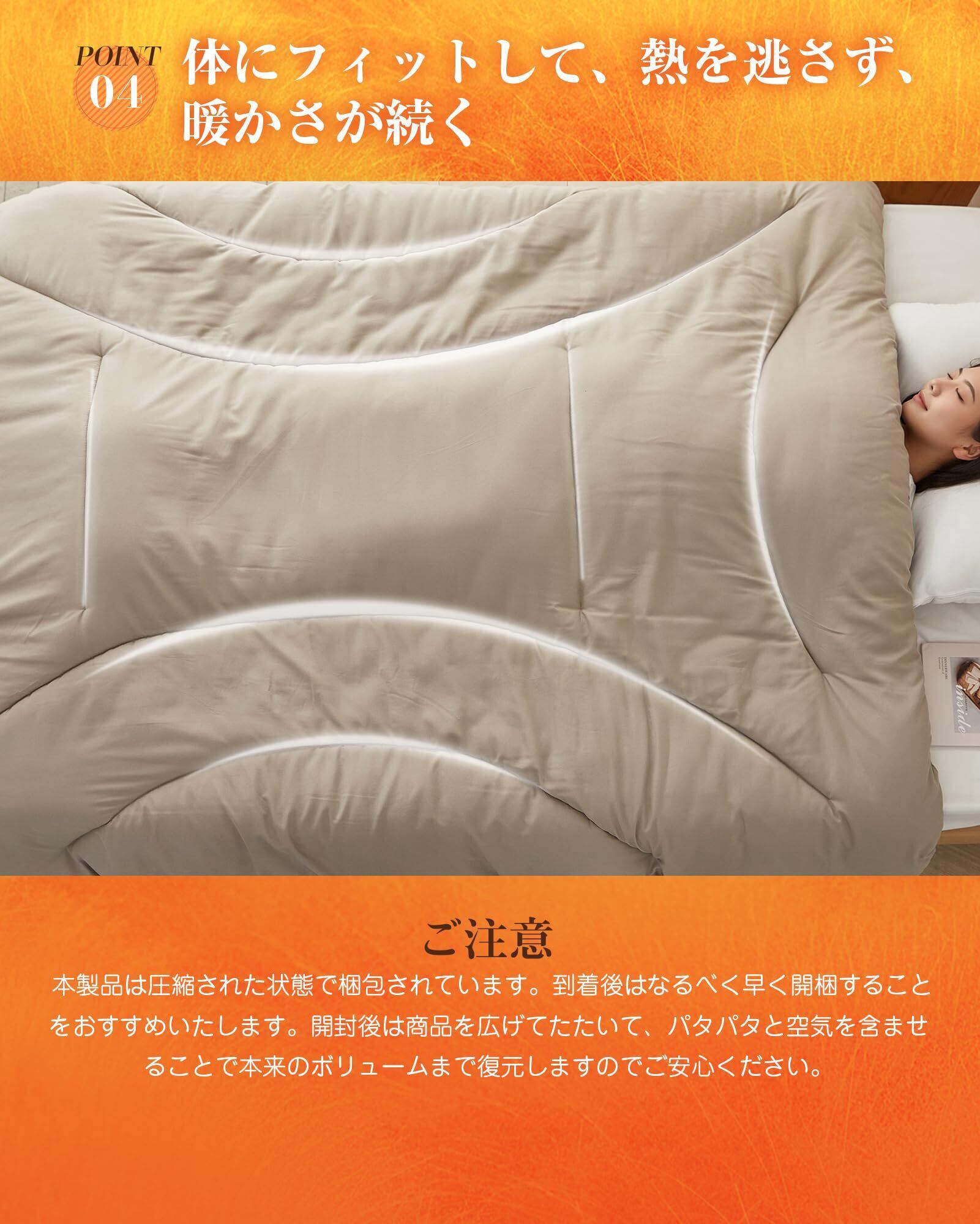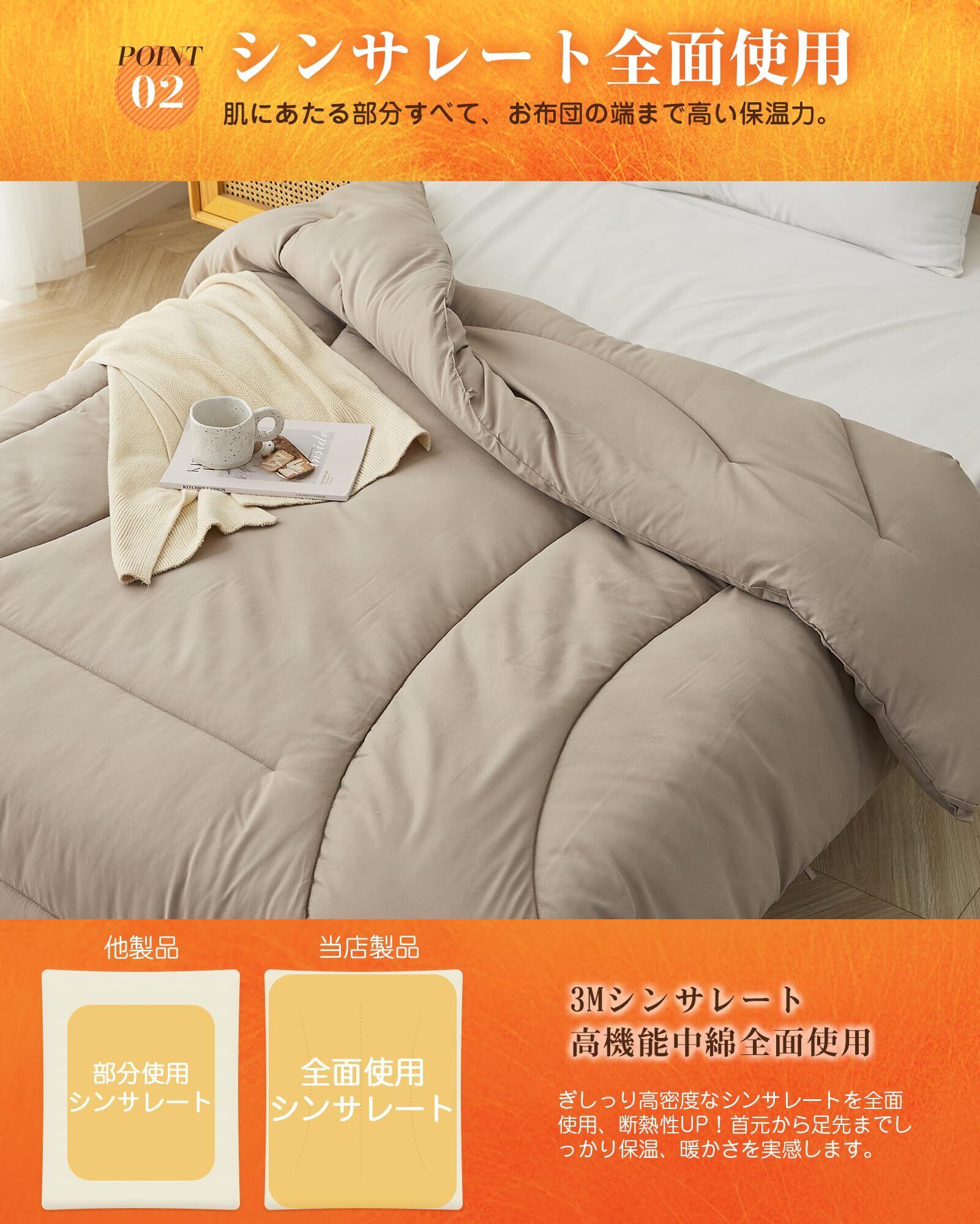 【シンサレート羽毛より暖かい】薄くて軽いのに暖かい!断熱素材シンサレートを全面使用で保温カアップ!同じ厚みの一般的な布団と比べて、2倍の保温機能を持っています。薄くても暖かい断熱素材で身体の熱を外に逃さず、しかも湿気を通すので快適です。