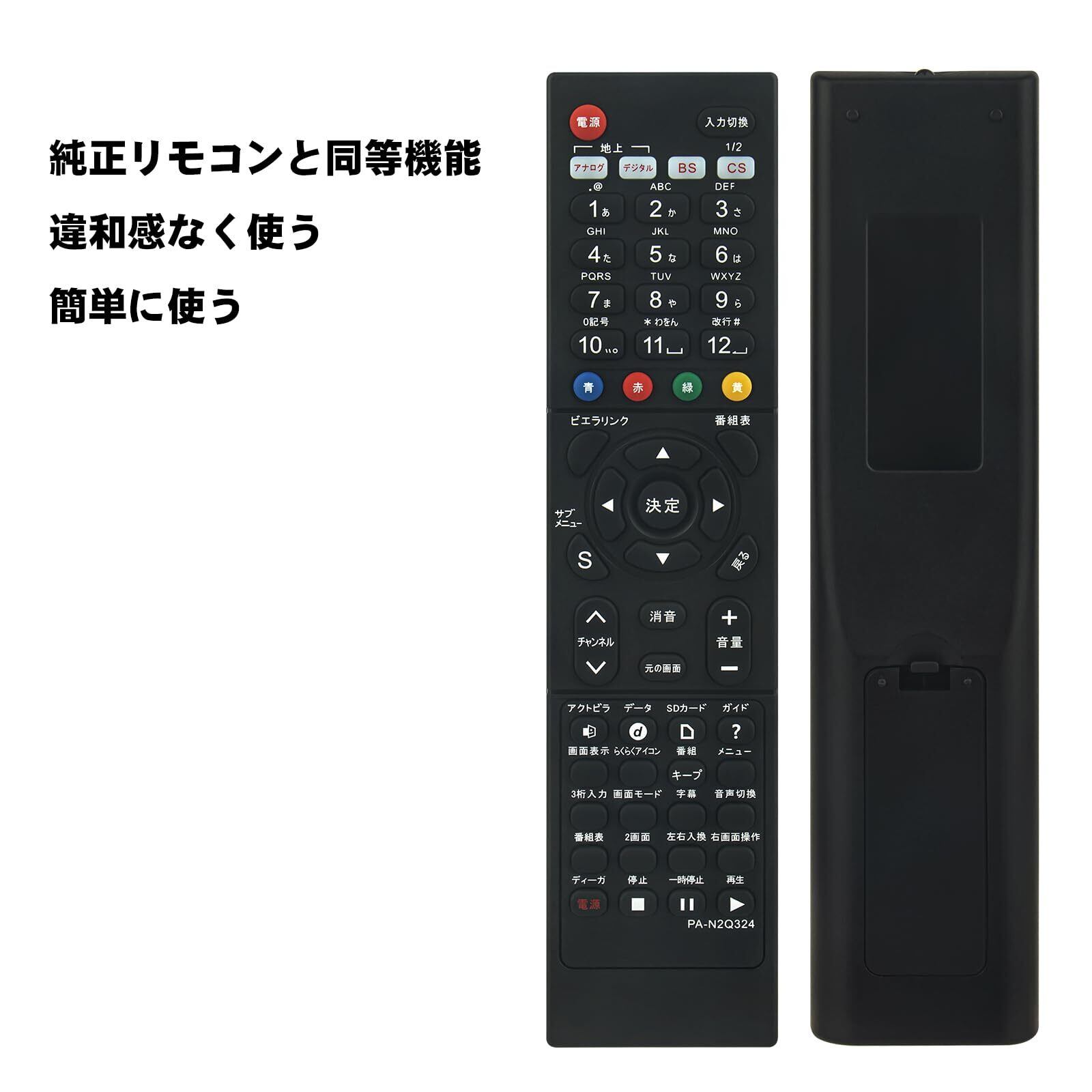 代替リモコン compatible with N2QAYB000324 N2QAYB000203 N2QAYB000201 N2QAYB000203 N2QAYB000484(代替品) パナソニック テレビリモコン【設定不要ですぐに使えるかんたんリモコン】