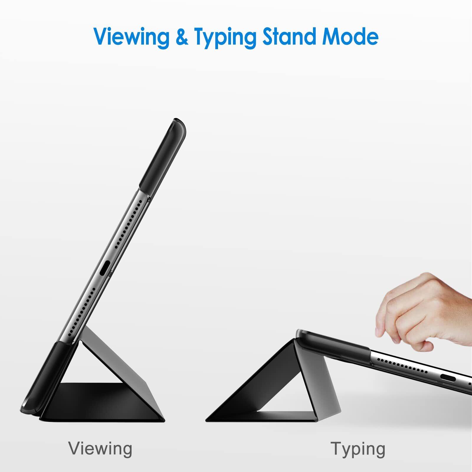 マグネット内蔵、オートスリープとオートウェイクアップ機能が付きます。三つ折りフロントカバーにより、視聴とタイピングに合わせた2通りのスタンド角度を調整できます。スタンドが正しく機能していることを確認するために、折り目の正しい向きを確認してください