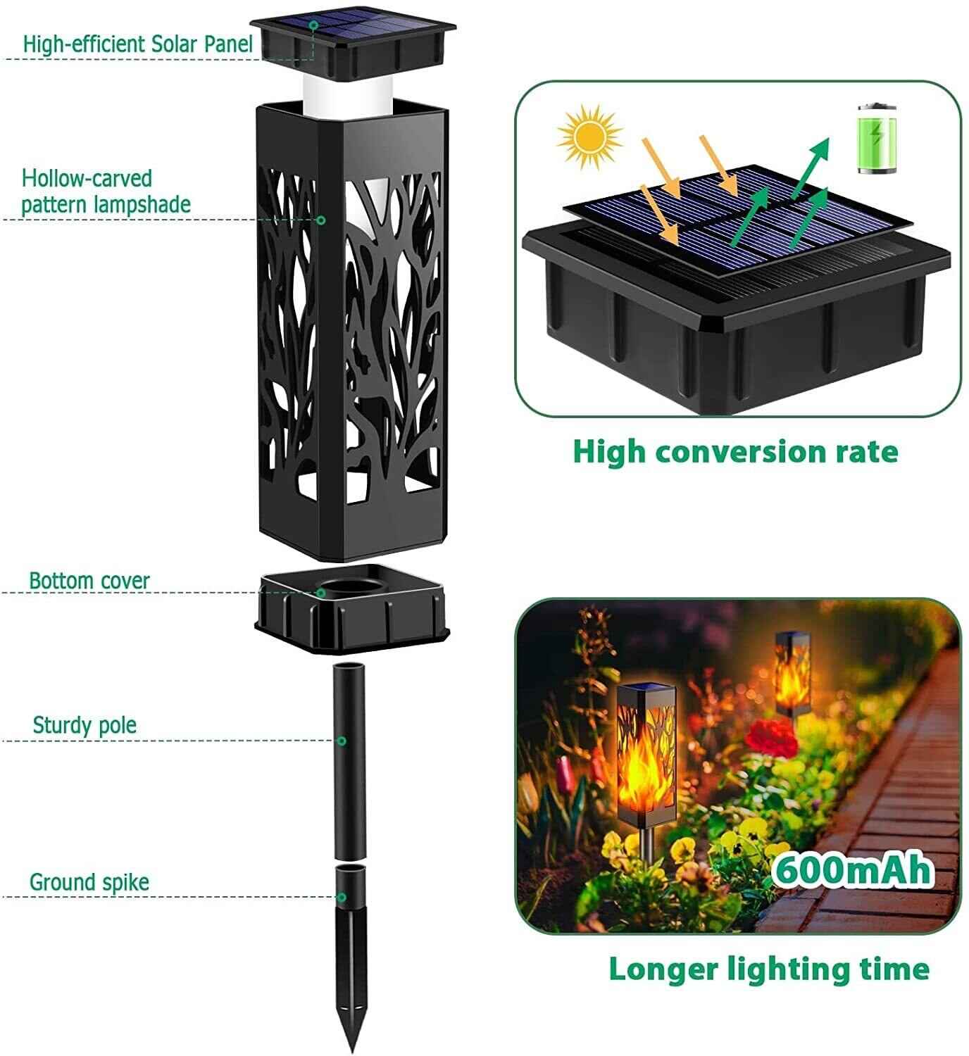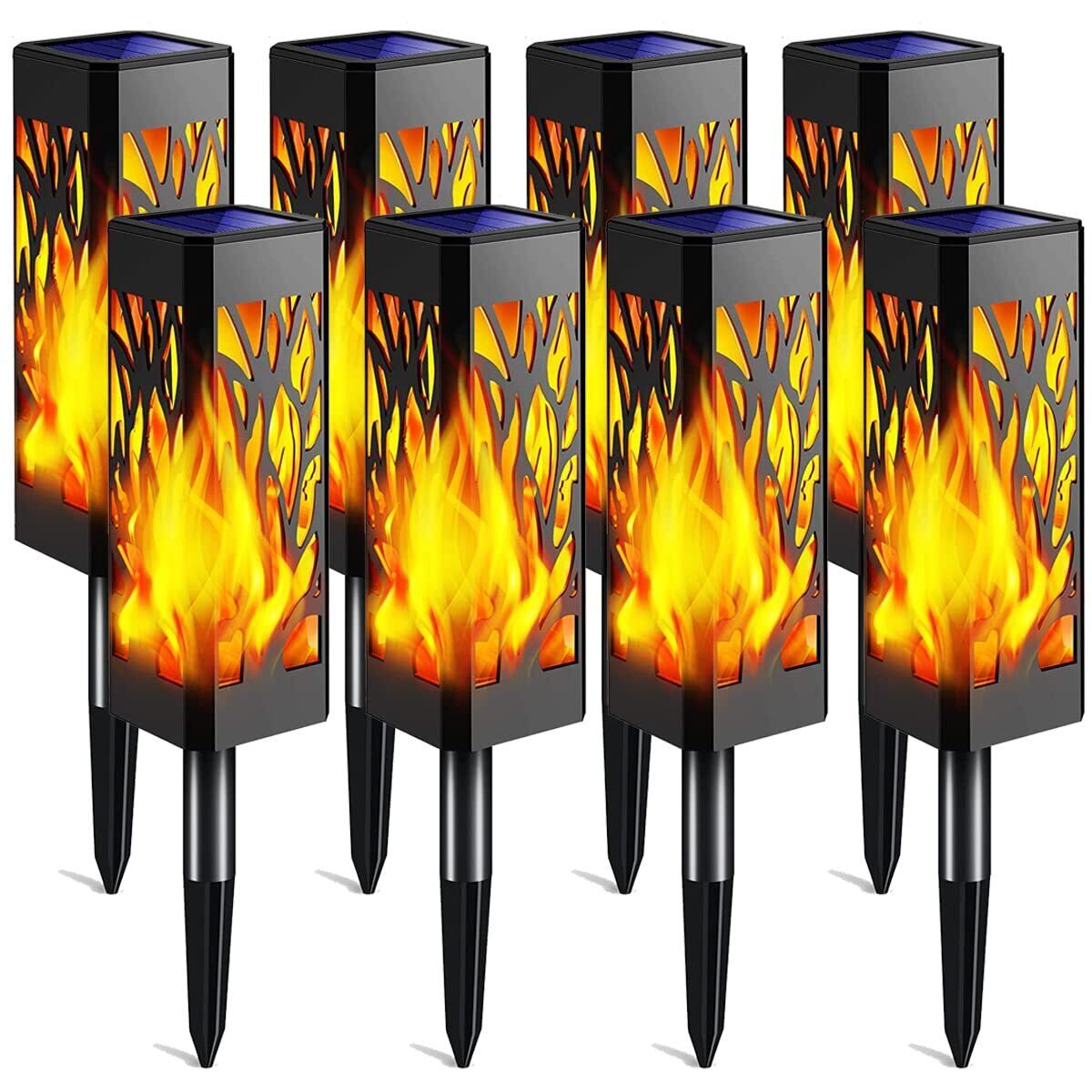ソーラーライト屋外ちらつき炎ソーラーパスウェイライトソーラーパワー装飾ソーラーガーデンライト防水フレームライト屋外景観照明ヤードパティオパスウォークウェイ、8パック