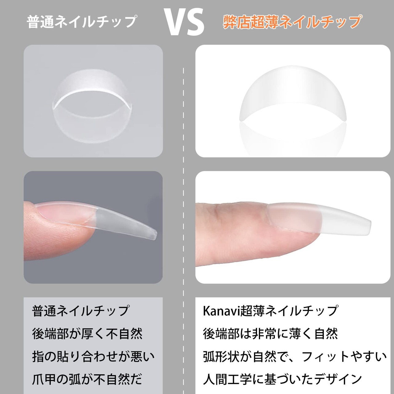【ソフトアクリル素材】超薄型のネイルチップのためとても自然な仕上がりになります。素材は高強度かつ強靭性があり曲げても折り曲がらず元に戻ります。表面はつや消しで爪との一体感やジェルのりが良好。