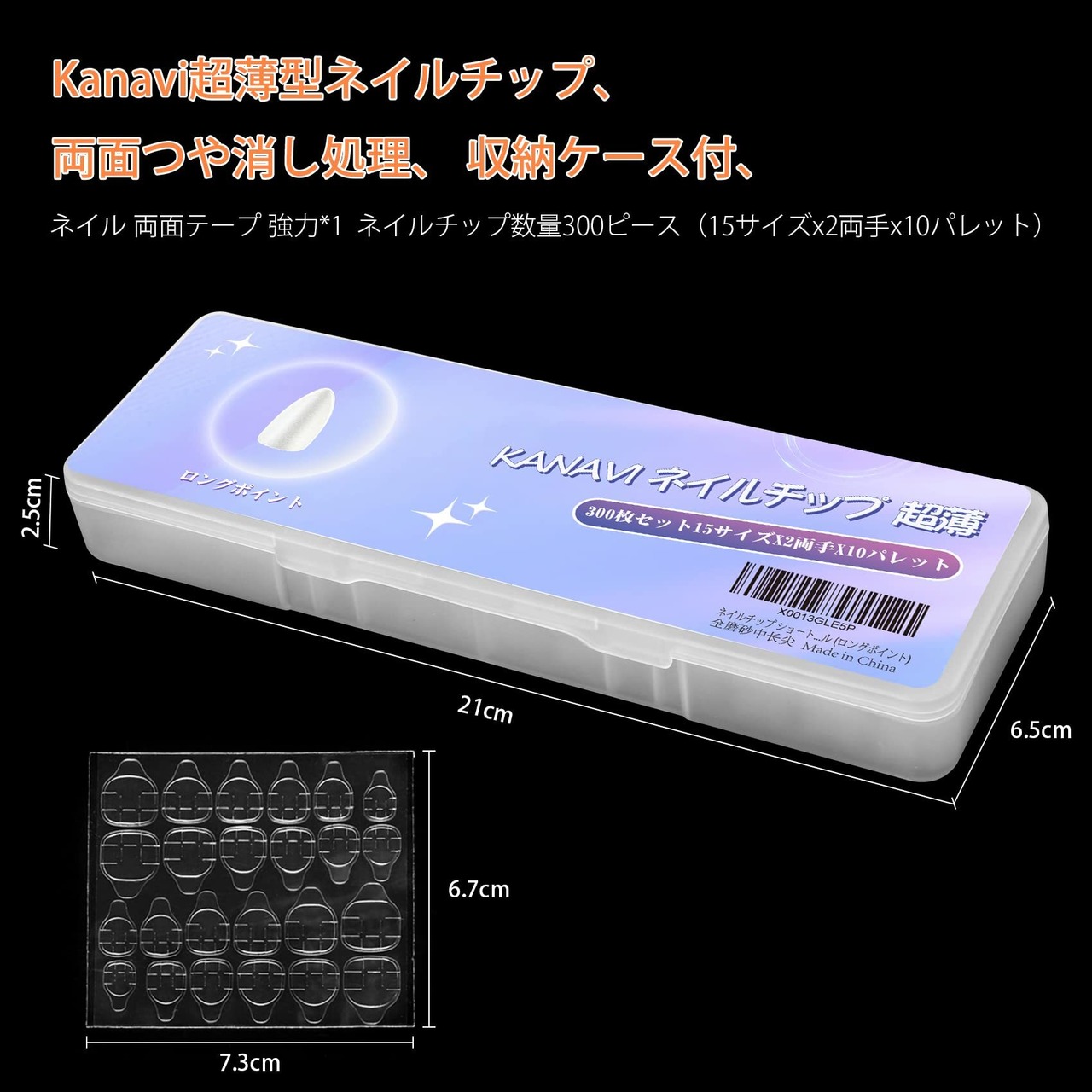 超薄型ネイルチップ 後端部0.2mmの超薄で自然なフィット感。収納ケース付。サイズ選びやすいパレット形状。300ピース(15サイズx2両手x10パレット)サンディング加工済み。