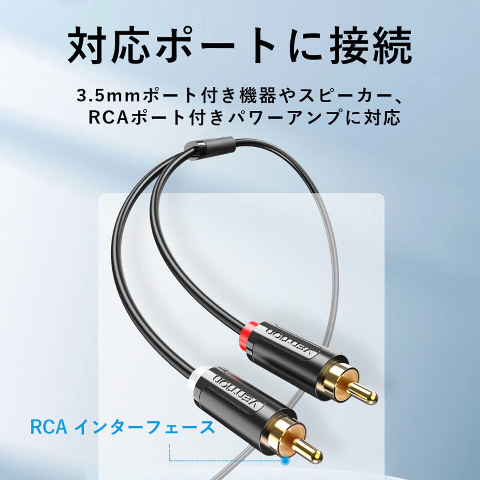【VENTION RCA BCL】 Vention avケーブル、RCA 3.5mm 変換 3.5mm オス - 2RCA オス オーディオ ケーブル イヤホン変換 rca ステレオプラグ は、 iPhoneに接続して、音楽 や ホーム シアター を楽しんだり、ミニコンポ や アンプ に接続して細部の音まで正確に 再生 します。そのほか、DVD VCD MP3 にも対応可能な Aux AV ケーブル です。