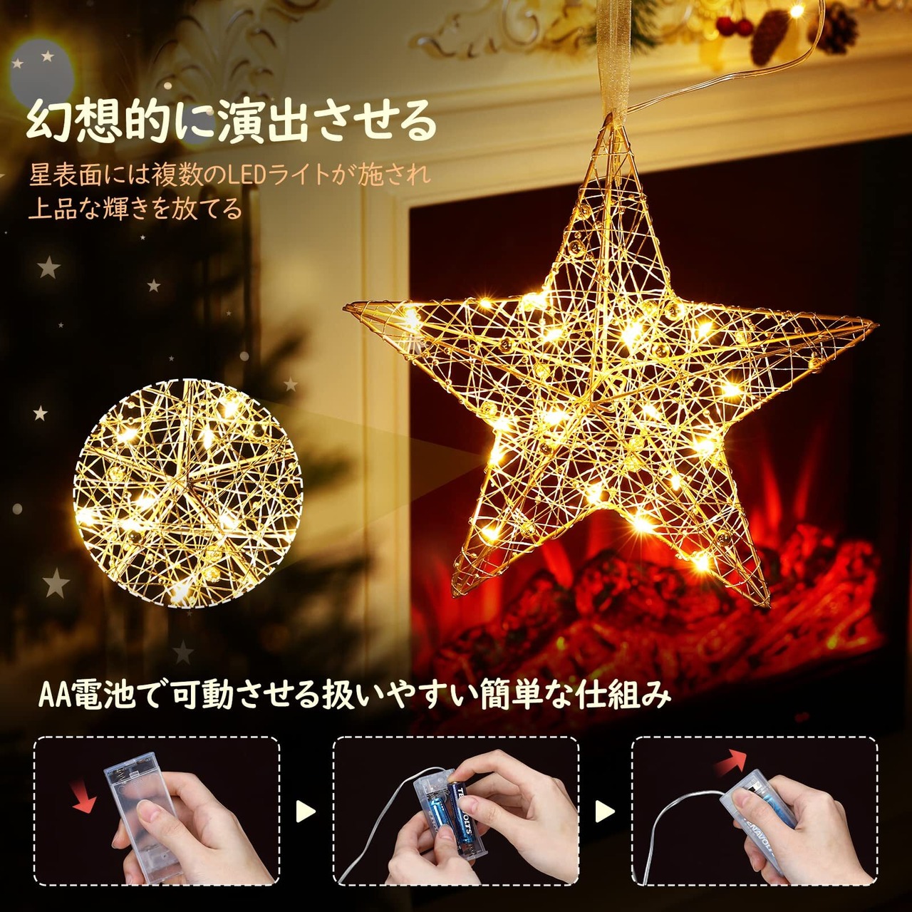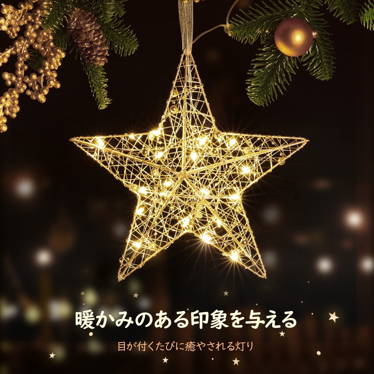 クリスマスライト Lewondr デコレーションライト クリスマスツリー 星 祝日飾り付けライト 飾りライト 吊り下げ式 ツリートップスター 星モチーフ LEDライト 電池式 雰囲気作り オーナメントライト 誕生日 学園祭 新年 忘年会 バレンタインデー パーティー 記念日 結婚 お礼 贈り物 お祝いプレゼント ゴールド