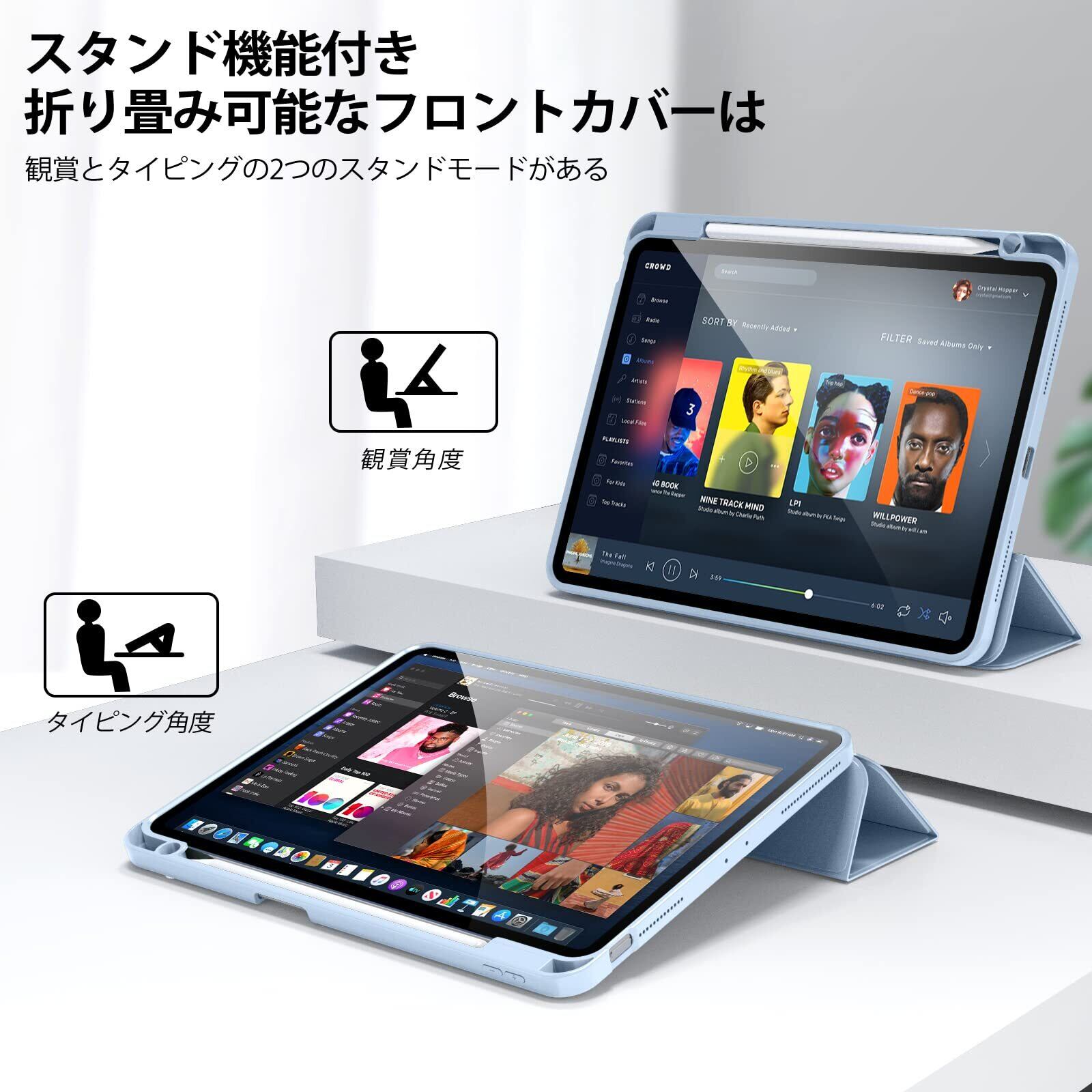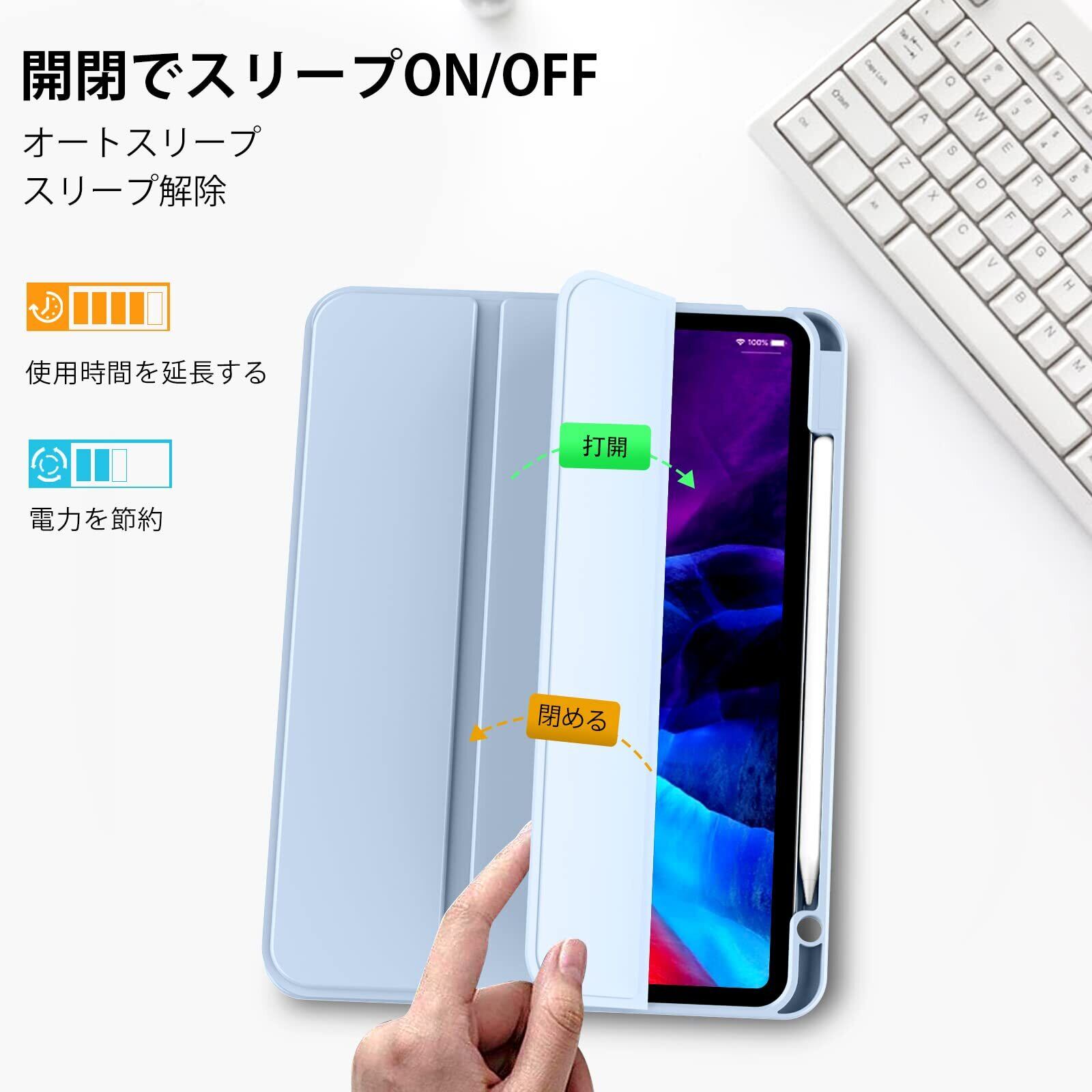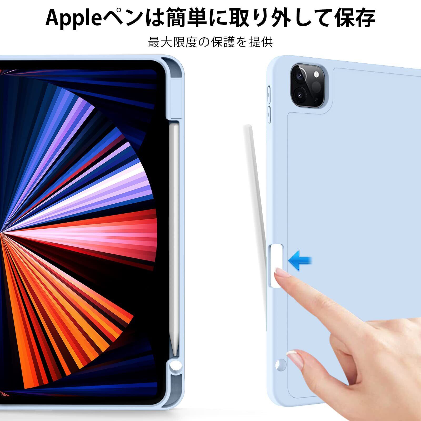 KenKe iPad Pro 11 ケース 第4/3/2世代 2022/2021/2020 iPad Pro 11インチ カバー 軽量 柔らかいシリコン TPU材質 ペン収納 iPad 保護カバー 第2世代Pencil充電対応 3段階折り畳み可 スタンド マグネット付き 自動スリープ機能 (ライトブルー)
