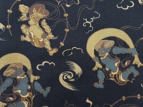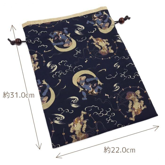 手作り工房FUJITA 巾着袋 裏地付き 和柄 風神雷神柄 日本製 御朱印帳入れ 御朱印帳袋 和小物 和柄 和雑貨 和風
