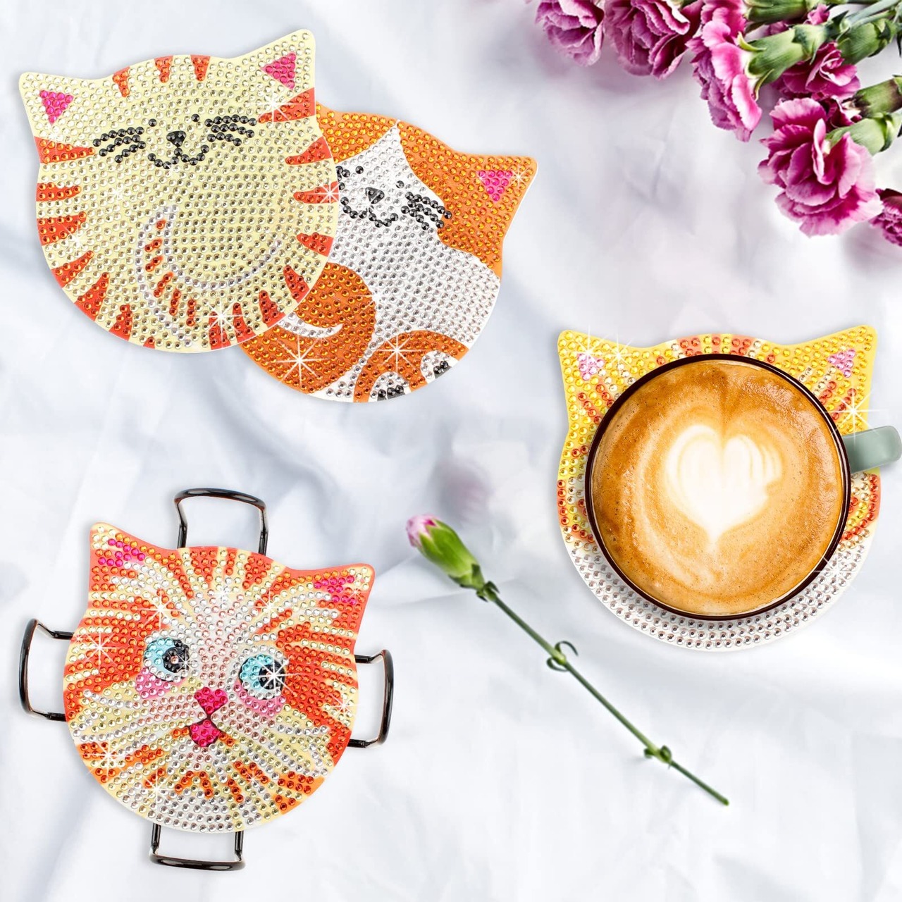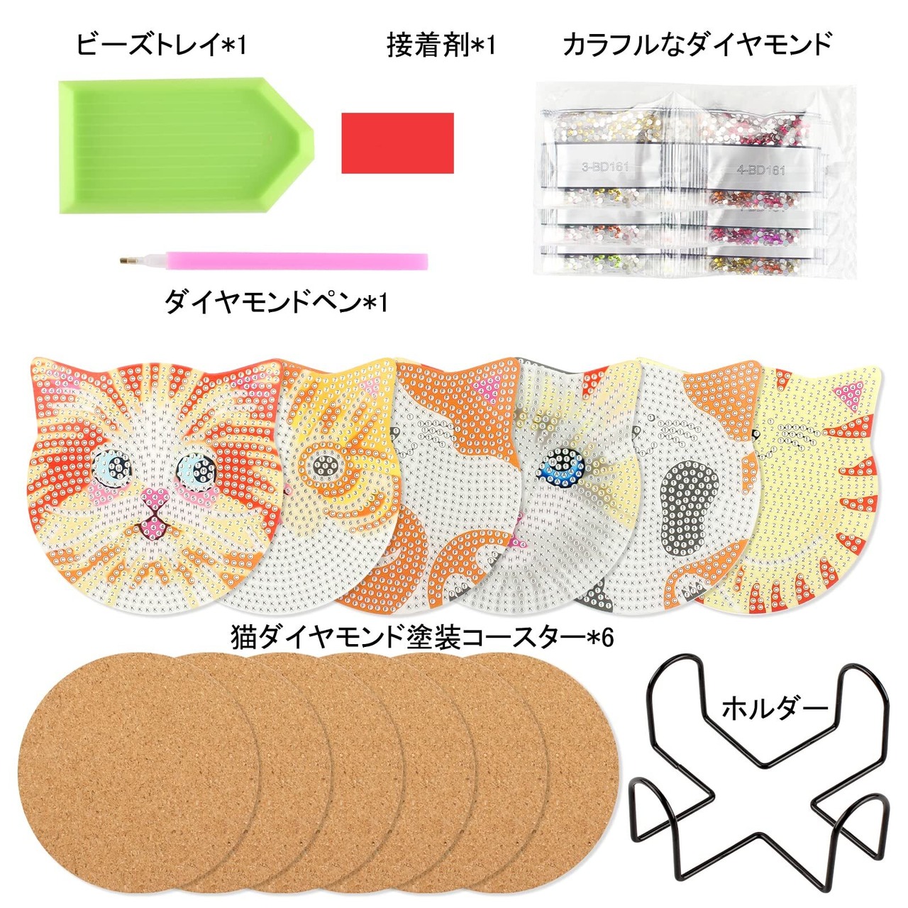 【パッケージ内容】 猫ダイヤモンド塗装コースター6個、スタンド1個、カラフルなダイヤモンド1セット、ビーズトレイ1個、ダイヤモンドペン1本、接着剤1個。きれいな装飾品になります。自分で手作りのプレゼントは、家族や友人にとって非常に意味があります。