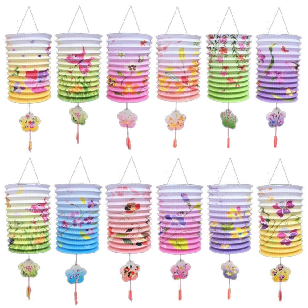(なないろ館)ミニちょうちん 12個セット 花模様 提灯 お盆 初盆 飾り 用品 七夕 装飾 夏祭り お祭り