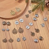 SUNNYCLUE 60個15種 チャーム ロータス ペンダント ヨガ ネックレス オーム 蓮の花 合金 オブ ライフ 蓮 チャーム チャクラ ヒーリング 仏教 パーツ エネルギー 透かし レイキ 癒し 瞑想 浄化 メタルビーズ チベット風 ブロンズ アンチック ヴィンテージ 銀古美 銅古美 チャームパーツ キーホルダー チョーカー ブレスレット アクセサリーパーツ 基礎パーツ ジュエリー作り レディース デコキット クラフト手芸 手作りキット DIY飾り物