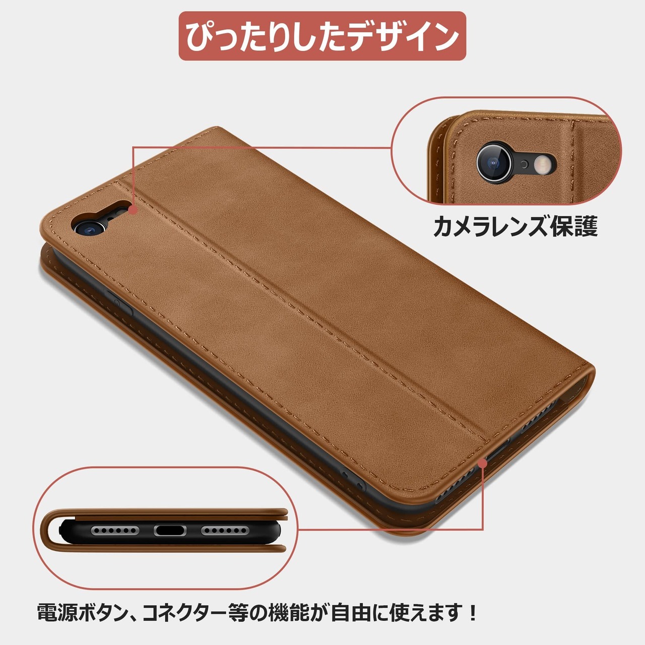 【放熱性良い】iPhone SE 第2世代ケース 手帳型(2021新型)は最高級レザーと放熱性が良いTPU素材で、優れた放熱性能を持ちます。ケースをつけたままコネクタへの接続が可能です。