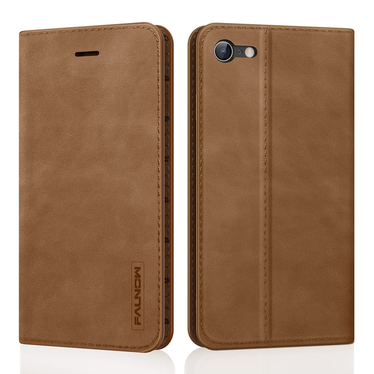 FAUNOW iPhone SE ケース 第2世代 iPhone8 ケース iPhone7 ケース スマホケース 手帳型 携帯カバー レザー 耐衝撃 軽量 着脱しやすい 放熱性 マグネット式 カード収納 スタンド機能 4.7インチ対応(ブラウン)