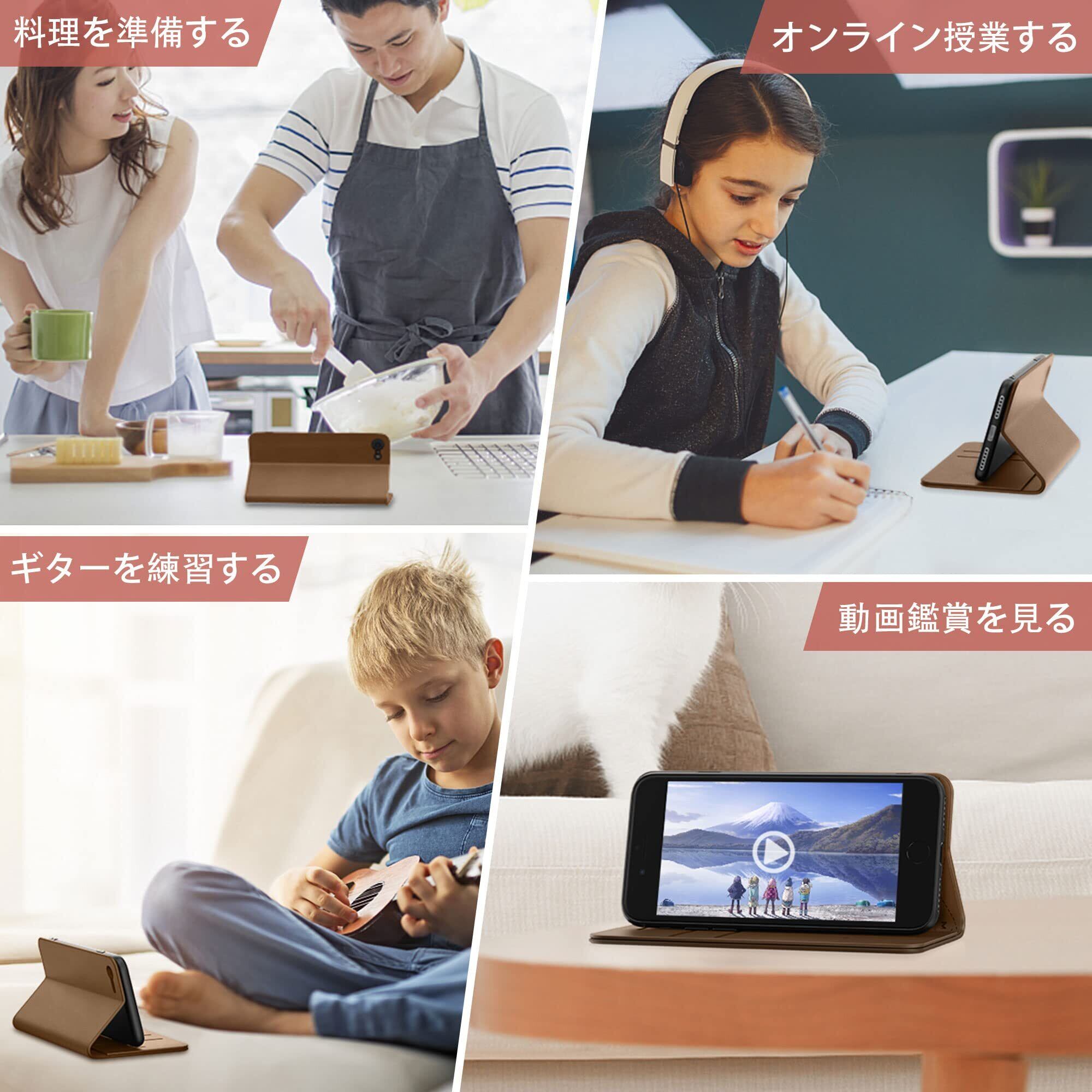【カード収納機能・横スタンド機能】この手帳型ケースは横置きのスタンド機能が付いて、好きな角度を調整して動画鑑賞や読書などを楽しめます。内側には二つのカード入れと隠しポケットが付くため、カード類や紙幣 、名刺、免許証などを入れることができ、日常の生活に便利です。