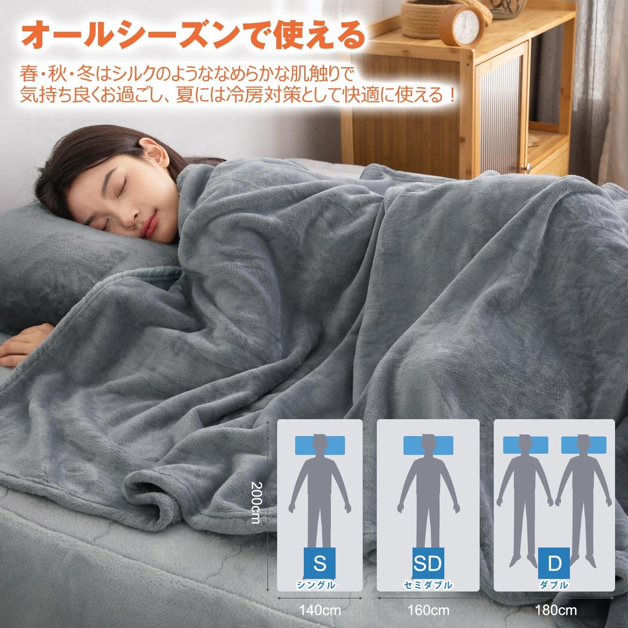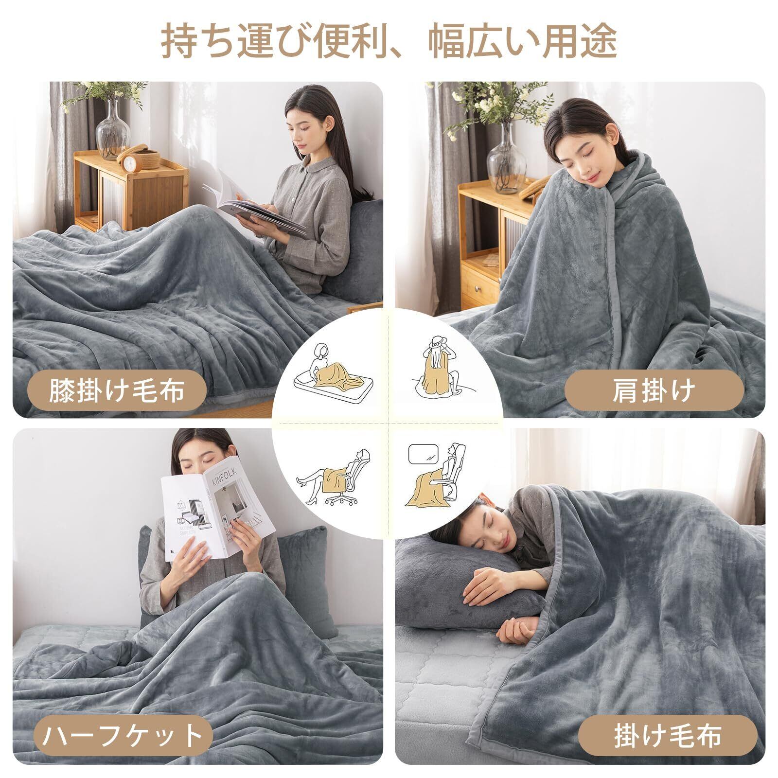 【オールシーズン使用可能・軽量】冬用毛布は、オールシーズンに対応しています。冬の寒さはもちろん、春や秋のさわやかな季節でも使えるので、長い期間使い続けることができます。気候の変化に合わせて、いつでも快適な睡眠を手に入れましょう。また、0.9KG軽量な素材で扱いやすく、寝ている間に毛布が体に圧迫感を与えることがありません。持ち運びにも便利です。特に夜間に窮屈な感じを軽減し、より自然な寝姿勢を保つことができます。心地よい眠りと快適な睡眠環境をサポートします。