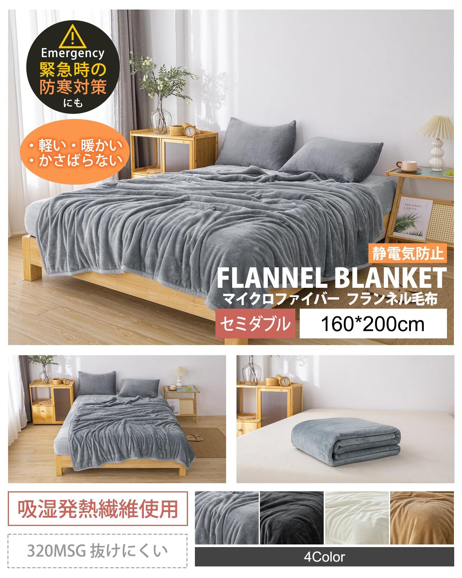 Vallein 毛布 シングル 冬 厚手 フランネル生地 ブランケット セミダブル ダブル 冬用 あったか 暖かい 洗える 吸湿発熱 丸洗いOK(レギュラー・ライトグレー・セミダブル・160*200cm)