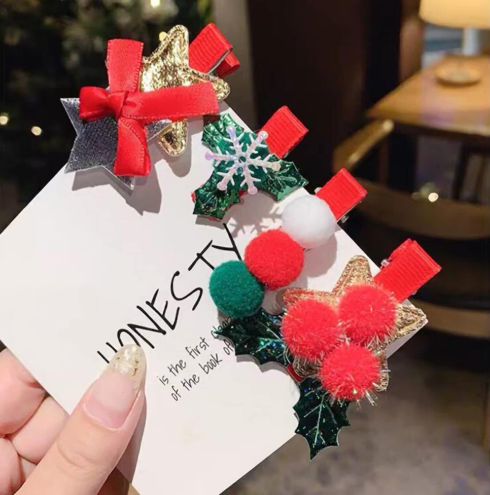 色 クリスマス ヘアクリップ 5個(1)