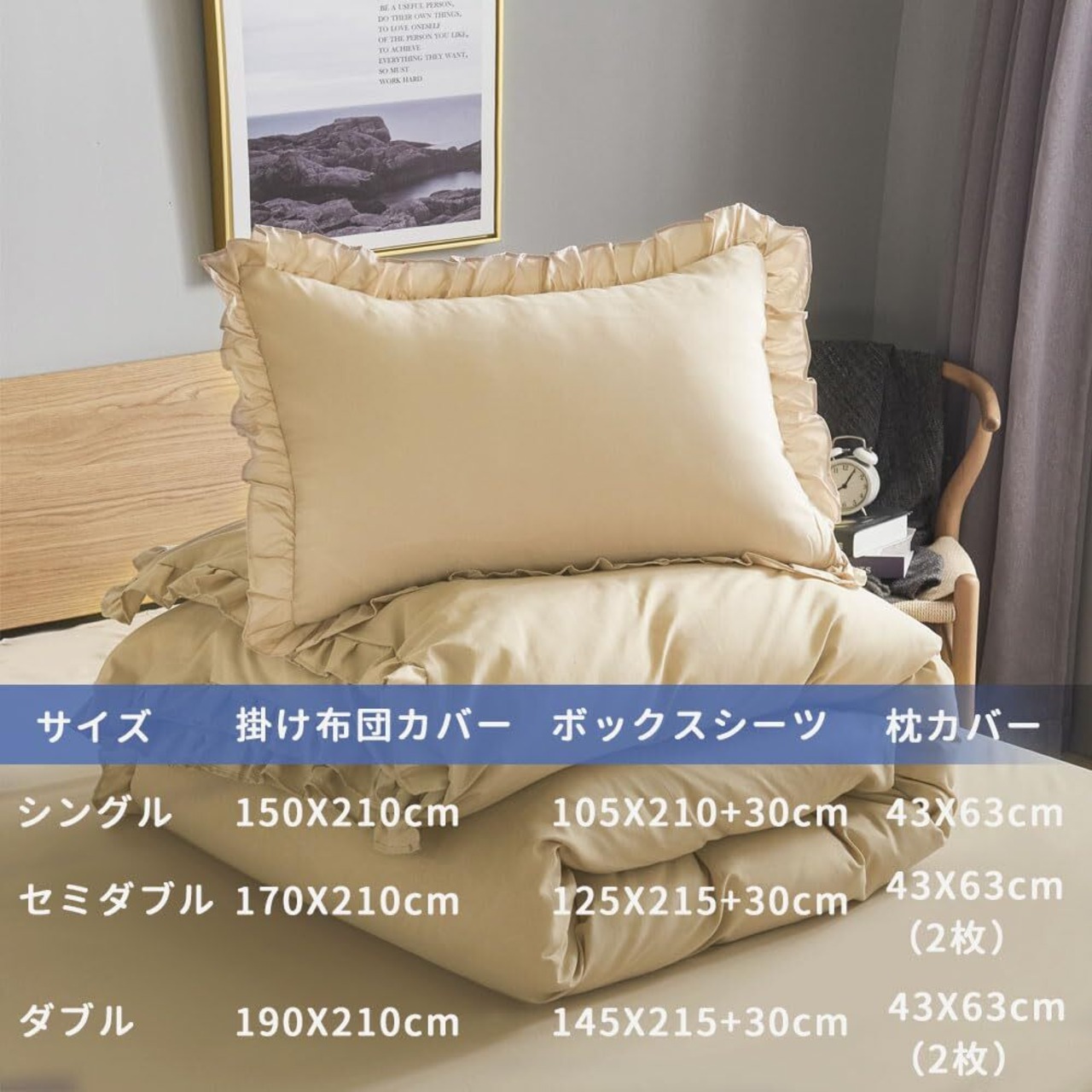 【スタイリッシュなデザイン】:掛け布団カバーと枕カバーは可愛いフリルが付いています。無地で色は派手すぎずにどんなインテリアにもピッタリと雰囲気を合わせます。体に溜まった疲れをちゃんと取れて心が癒されるようなリラックス感を感じさせます。