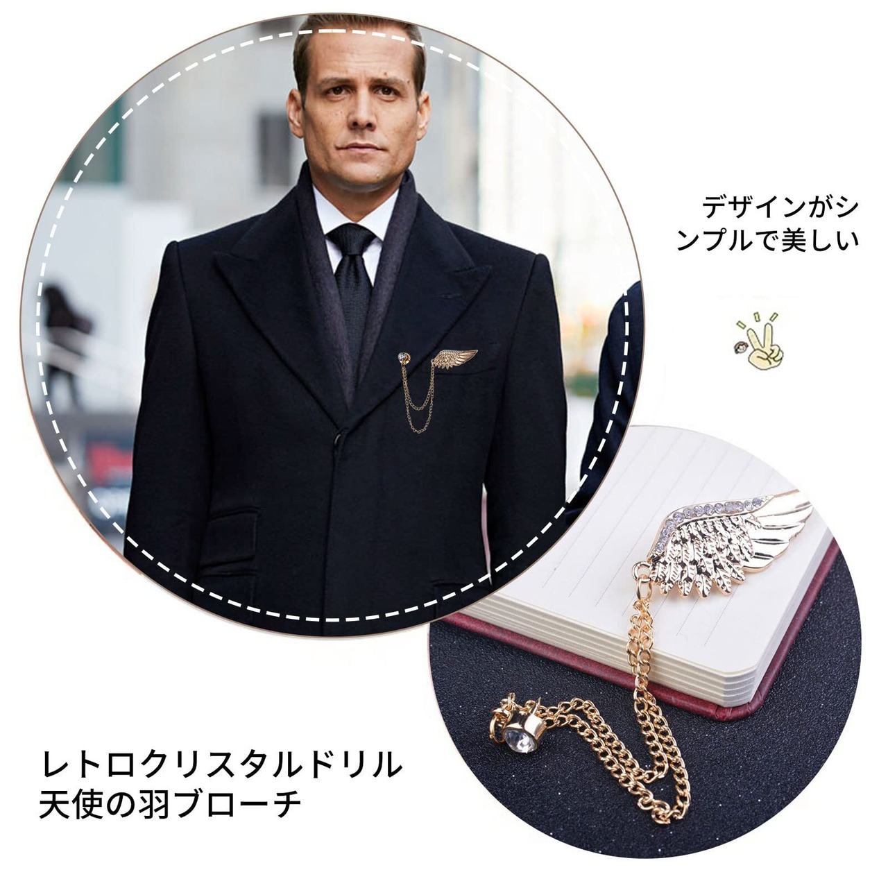 【ブローチ】翼をモチーフにしたブローチピンで、チェーンに取り付けられたラインストーンが輝きを放ちます。スーツやジャケットとスタイリッシュにコーディネートでき、とても堂々とした印象を与えることができます。