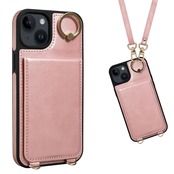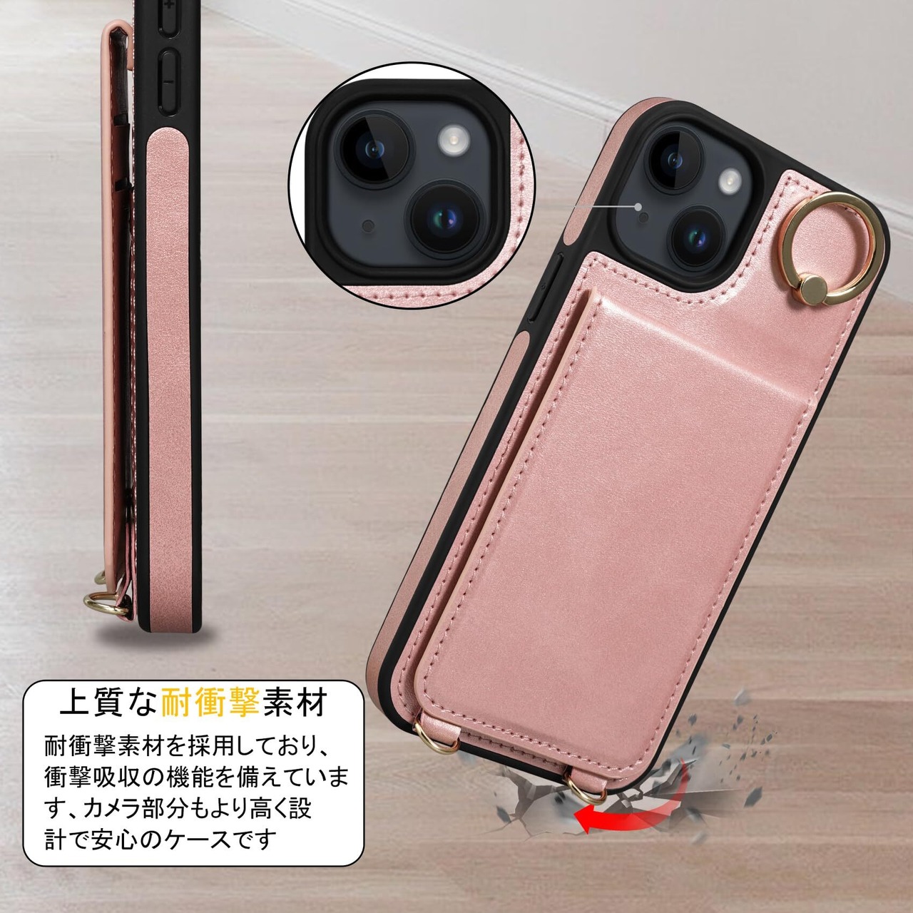 iPhone 15 Plus 用 ケース 背面 手帳型 iPhone15 Plus 用 カードケース 手帳型ケース 背面ケース スマホケース ショルダー ストラップ 肩掛け スタンド カード収納 斜め掛け 首掛け PUレザー マグネット アイホン 15 プラス 用 可愛い 人気 おしゃれ アイフォン 15 ぷらす 用 6.7inch対応 ピンク