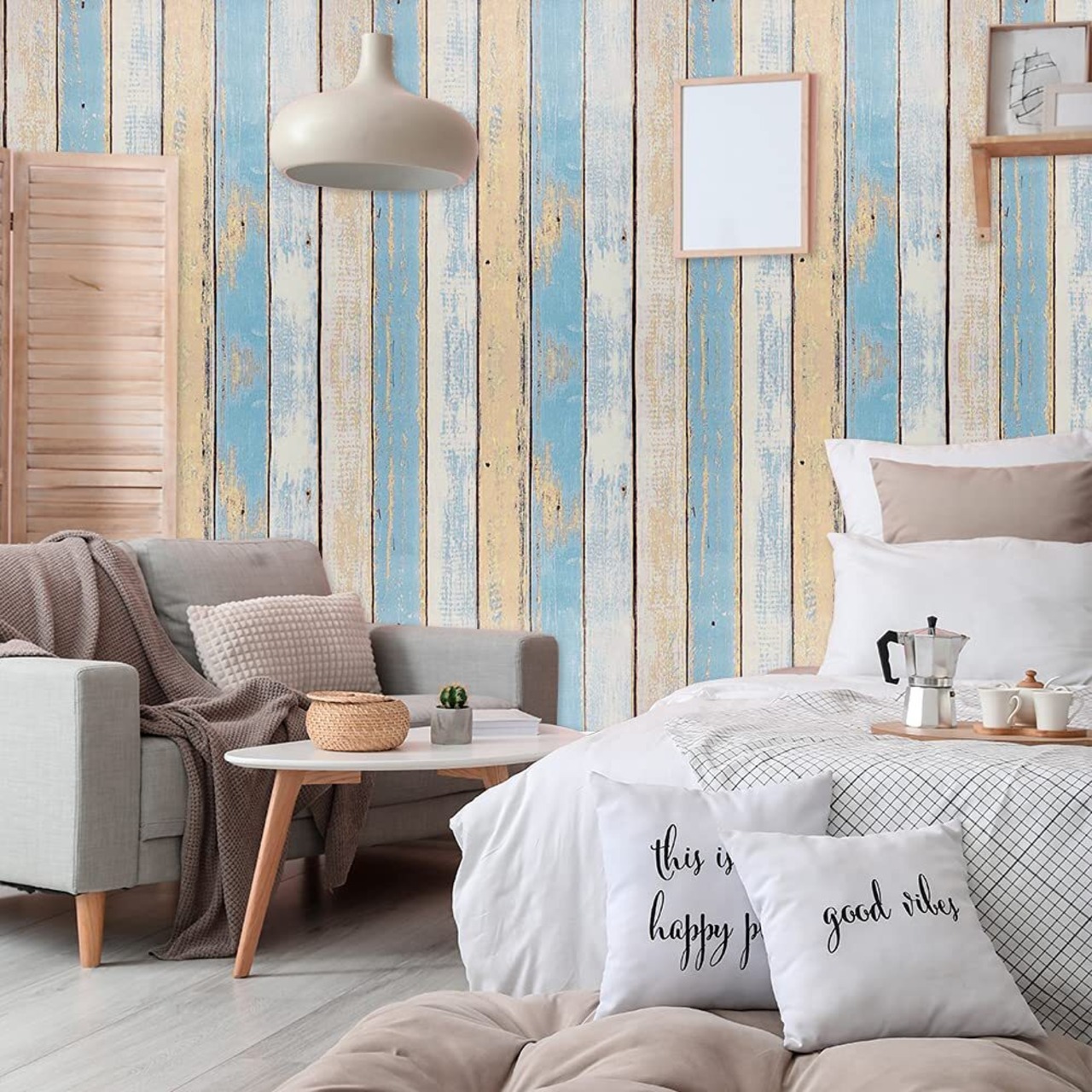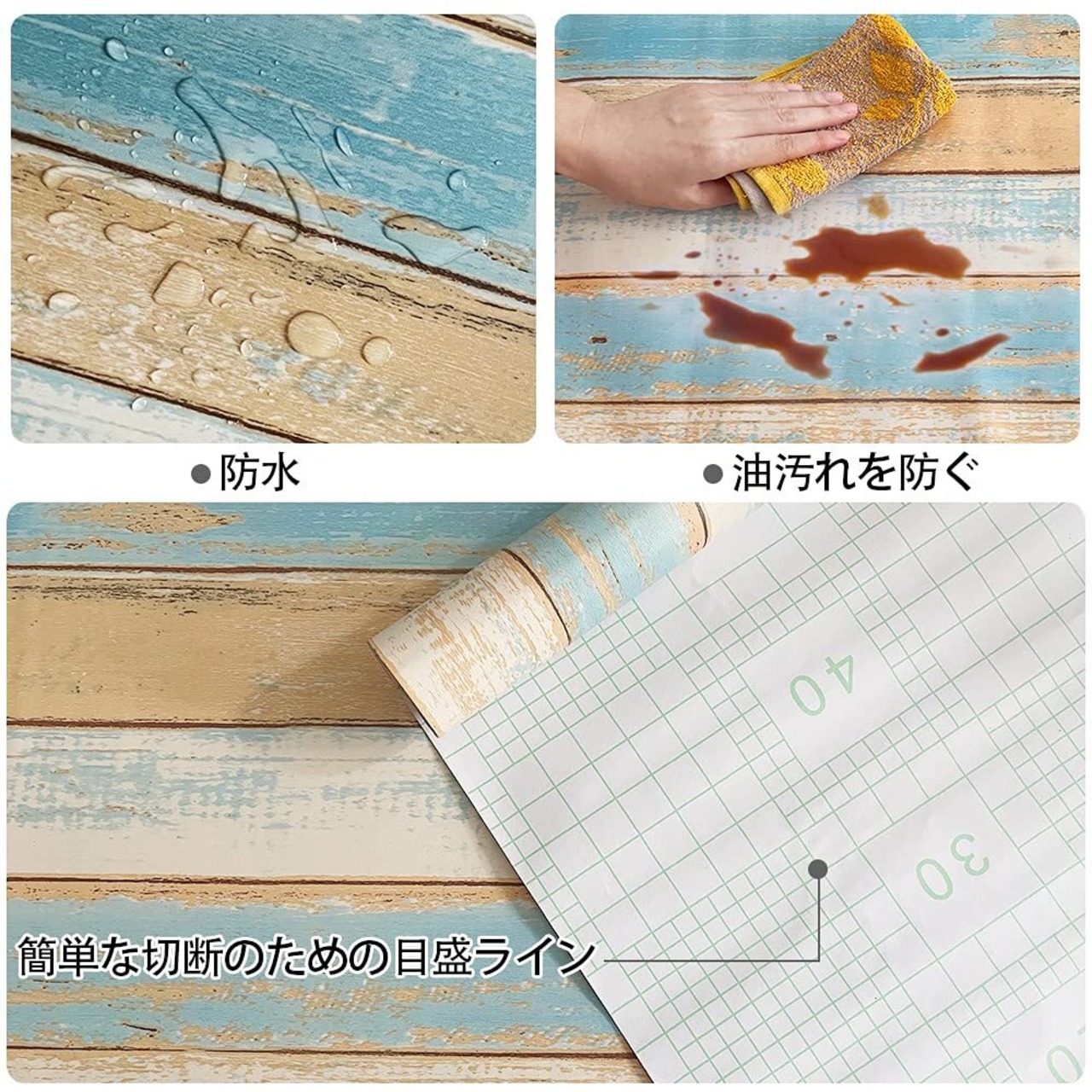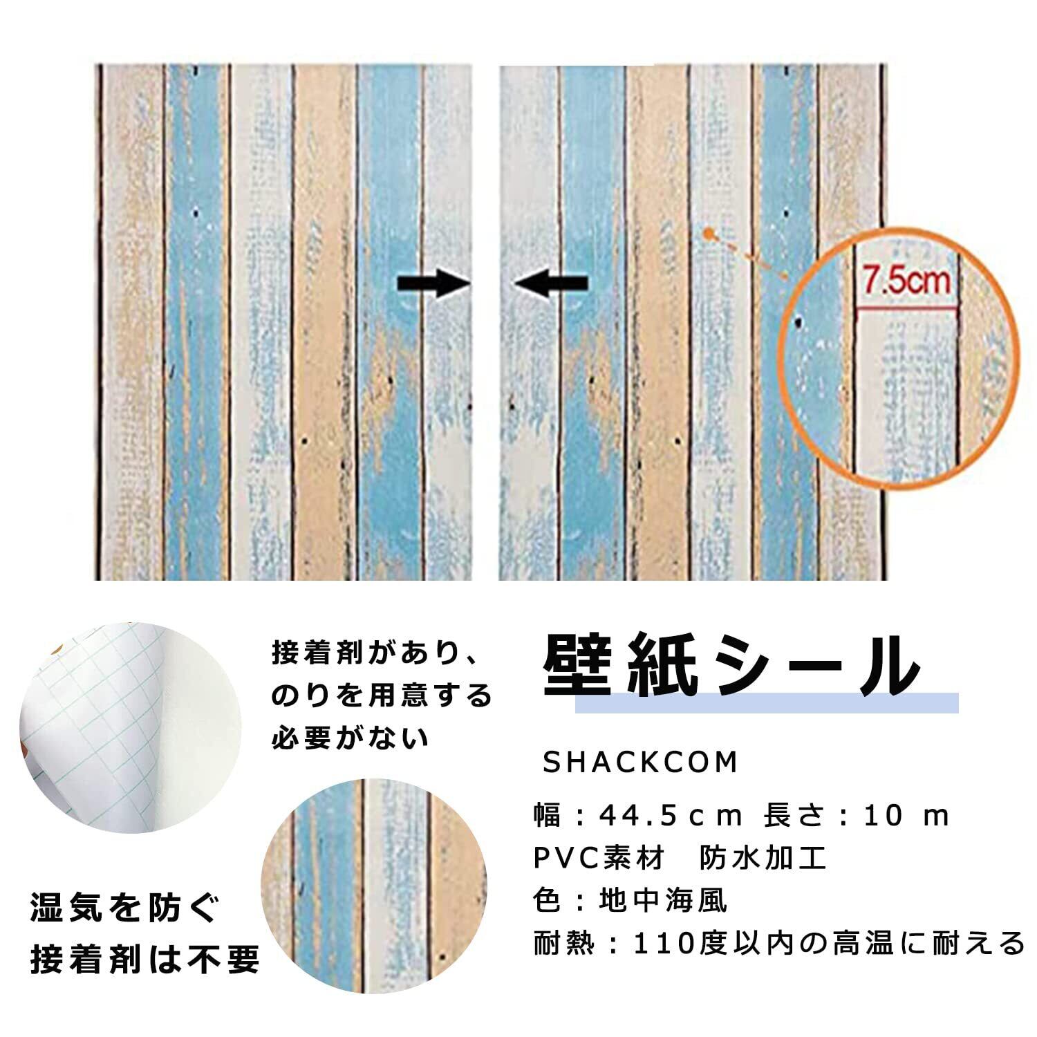 壁紙シール 木目シール 地中海風(44.5CM×10M×2枚)リメイクシート はがせる おしゃれ カッティングシート はがせる壁紙 防水 湿気を防ぐ リビングルーム 浴室 北欧 DIY リフォーム シート 壁紙 (木目調 地中海風)