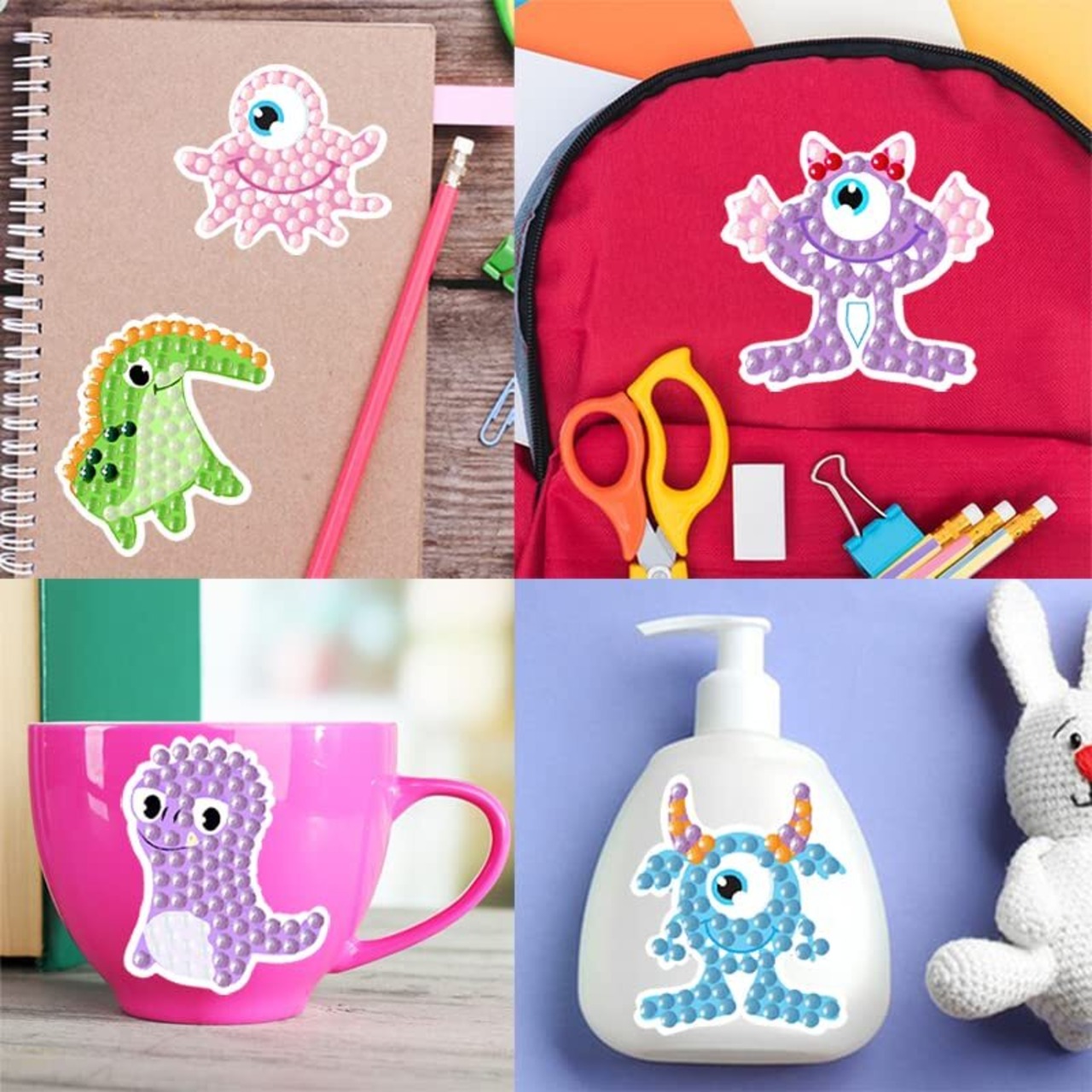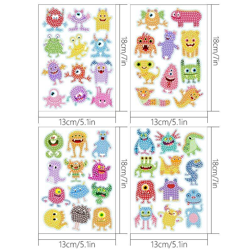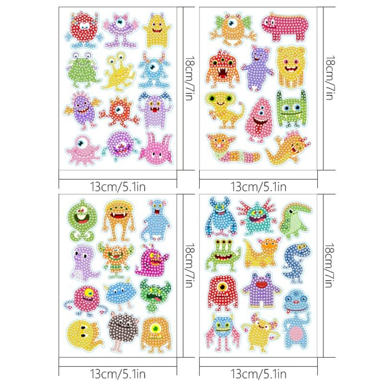 5D DIY ダイヤモンド ステッカー ペインティング キット 子供用 動物 ステッカー ペイント ダイヤモンド 数字によるキット アートクラフトセット 子供 男の子 女の子 (モンスターシリーズ)