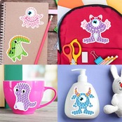用途 - 完成したら、カップ、ペンホルダー、貯金箱、ノートパソコン、冷蔵庫のドア、携帯電話、帽子など、飾りたいものに貼り付けることができます。