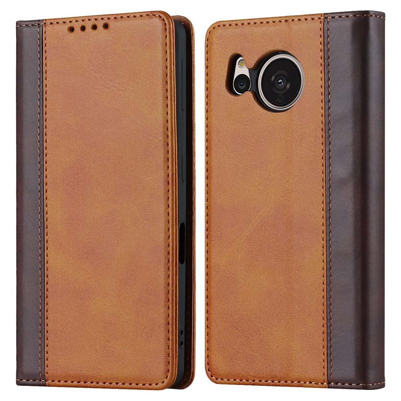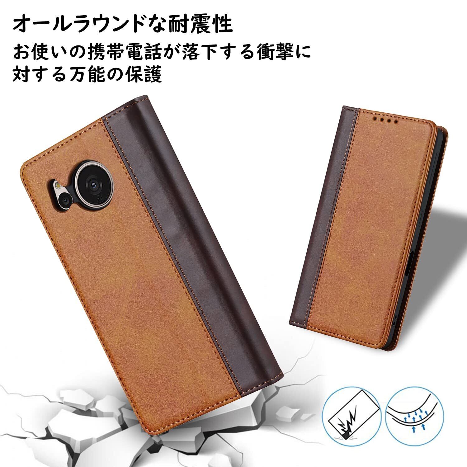 Havaya AQUOS Sense7 ケース SH-53C ケース sh53c スマホケース SHG10 手帳型 耐衝撃 au アクオス センス7 カバー docomo 楽天モバイル SoftBank レザー カード収納-イエロー+ブラウン