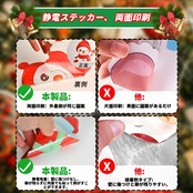 【両面印刷、多様な図案】:従来のクリスマスステッカーは片面印刷で、図案が簡単、本製品は精緻な両面印刷を採用し、外側から見ても内側から見ても綺麗な図案を見えます。 このクリスマスステッカーはサンタさん、トナカイ、雪屋、クリスマスツリー 、雪だるま、雪の結晶などのクリスマスには欠かせないキャラクターが大集合鮮やかな色で人目を引きやすいし、喜びの雰囲気を盛り上げることができます。