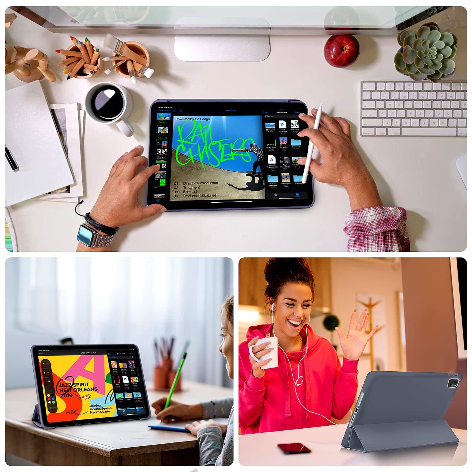 KenKe iPad Pro 11インチ ケース 第4/3/2世代 (2022/2021/2020モデル) 超軽量 薄型 柔らかいシリコン TPU材質 傷つけ防止 カバー 3段階折り畳み可 スタンド マグネット付き 自動スリープ機能 新型のiPad Pro 11 対応 (ブルーグレー)