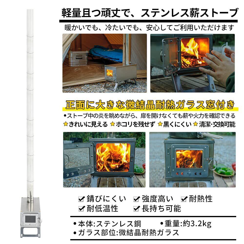 材質:本体はステンレス鋼を採用、特徴が錆びることなく、強度高く、耐熱性及び耐低温特性に優れております。窓は微結晶耐熱ガラスを採用、熱に強く、何時までもきれいに見え、ホコリを残せず、黒くなることなく、安全性を確保しつつ、ストーブ中の薪や火力を確認することもでき、扉を開けなくても火の管理や調節を手軽に行うことができます。