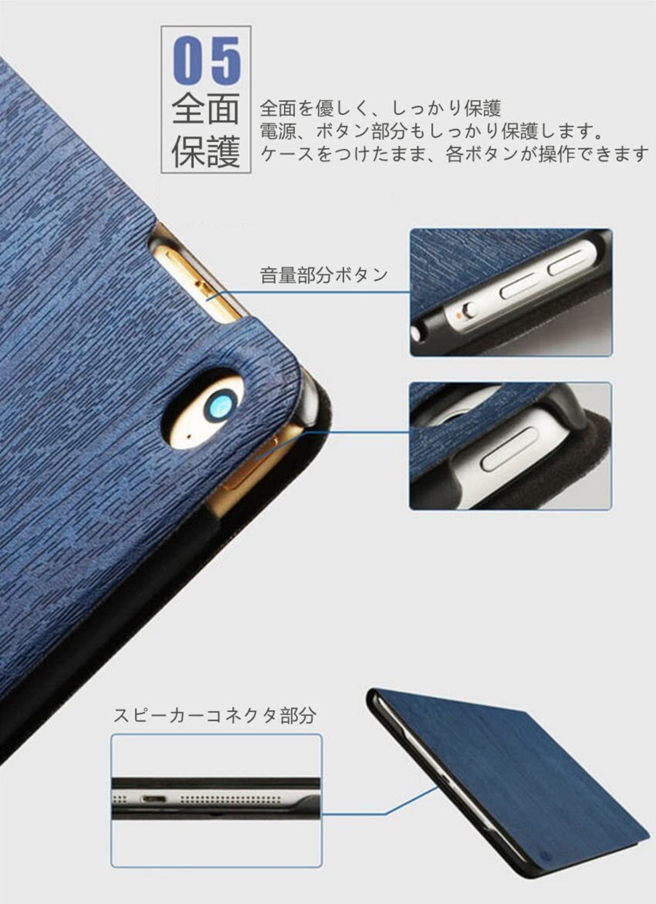 iPad保護ケースは高品質のPUレザーを採用し、インナーシェルはハードPC素材を採用しており、手触りが良く、汚れに強く、防水性にも優れています。