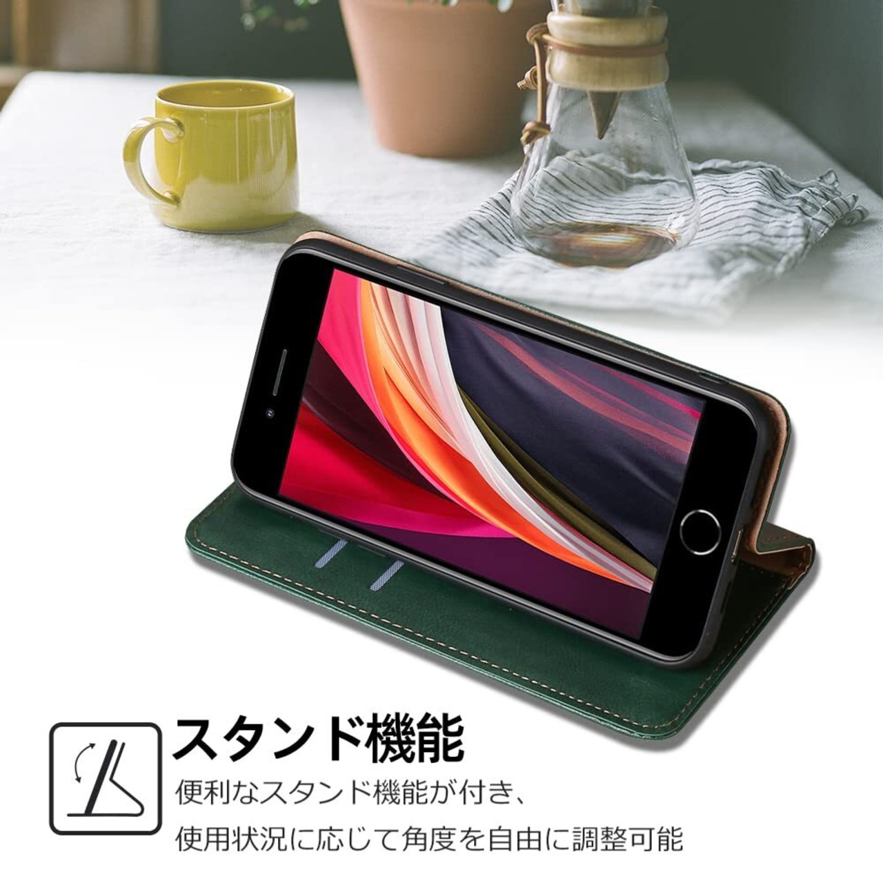iPhone SE ケース 第2世代 第3世代 iphone8/7 ケース 手帳型 スマホケース 携帯カバー PUレザー カード収納ケース マグネット式 スタンド機能アイフォンse 4.7インチ対応 360度保護 PinLiSheng (エメラルドグリーン, iPhone SE2 iPhone SE3 iPhone8 iPhone7)