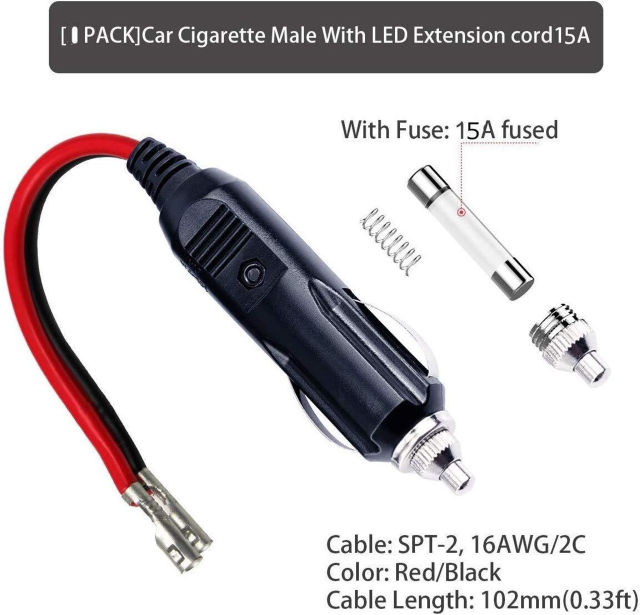 2個 シガーライター 12V/24V シガーソケット延長ケーブル シガーライタ延長コード シガレットライターケーブル 電源プラグアダプタ 16AWG純銅線コア LED指示ライト付き 絶縁性よく&耐熱&腐蝕耐え 安全安心使用 インフレータブルポンプ/掃除機/冷蔵庫適用 4つのガラス管ヒューズが付属