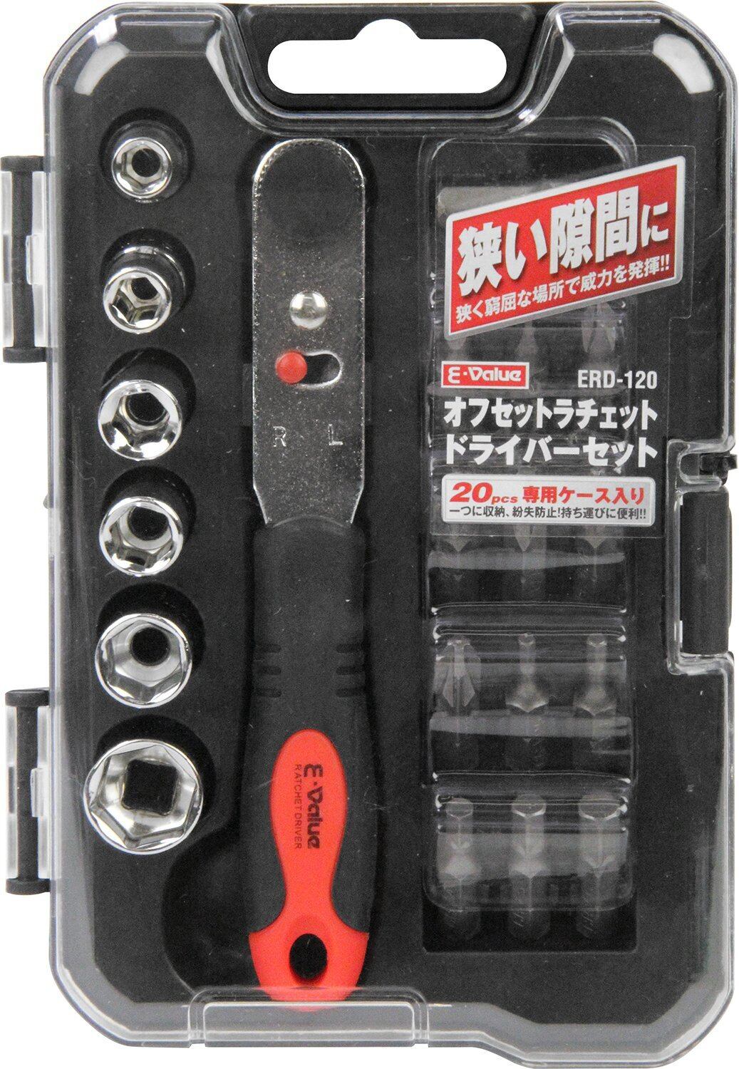 イーバリュー(E-Value) オフセットラチェットドライバーセット ポジネジ対応 20個セット ERD-120