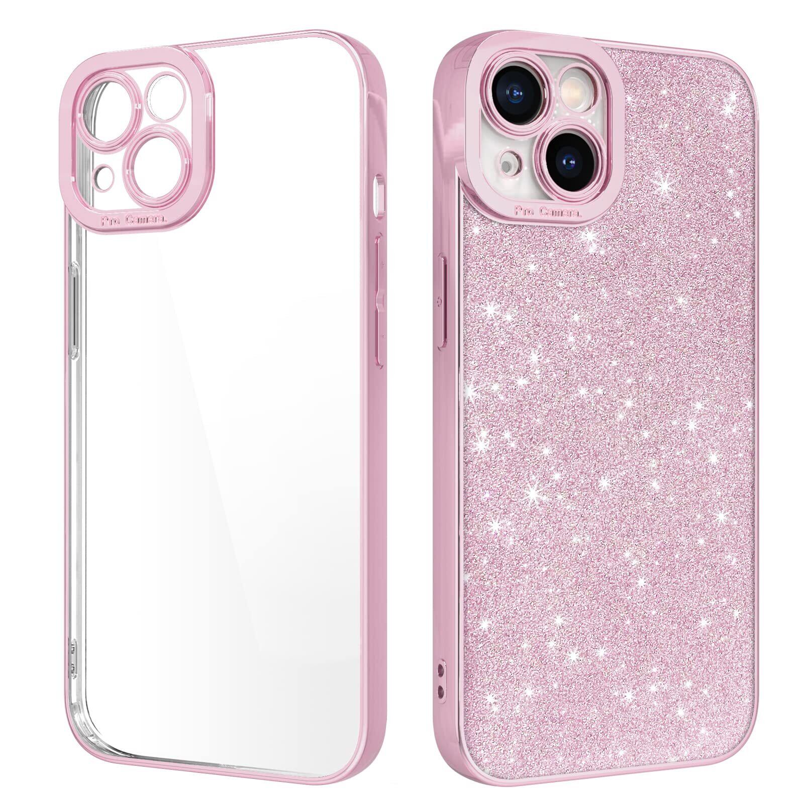 GUAGUA iPhone13 ケース キラキラ いphone 13 用 ケース 透明 2in1 ダイヤモンド 韓国 耐衝撃 クリア おしゃれ かわいい tpu 薄型 軽量 グリッターケース ワイアレス充電対応 滑り止め ストラップホール付き 6.1インチ(ピンク)